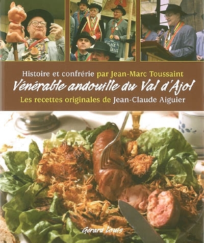 Vénérable andouille du Val d'Ajol Que de passion autour de l'andouille de Val d'Ajol ! Il faut dire que, en quelques décennies, ce produit du terroir presque oublié est devenu l'objet d'une sorte de vénération joyeuse autant qu'un mets gastronomiquement fort apprécié. Le troisième lundi de février, au Val d'Ajol, est un jour où l'on mange gras, chante gras, après avoir dépendu à tour de bras. Et l'on vient de très loin pour ce faire, qu'il vente ou qu'il neige. Les confrères et tasteurs de tout poil partagent une amitié « bon enfant » autour d'une bonne table. L'andouille est ainsi devenue humoristiquement, culturellement, socialement et économiquement utile au présent et au futur d'une jolie vallée. Il fallait deux Vosgiens pour écrire sur un objet de désir aussi recherché : le talent de Jean-Marc Toussaint journaliste à la Liberté de l'Est, et le génie créatif de Jean-Claude Aiguier, considéré comme l'un des plus brillants lorrains de l'après-guerre.