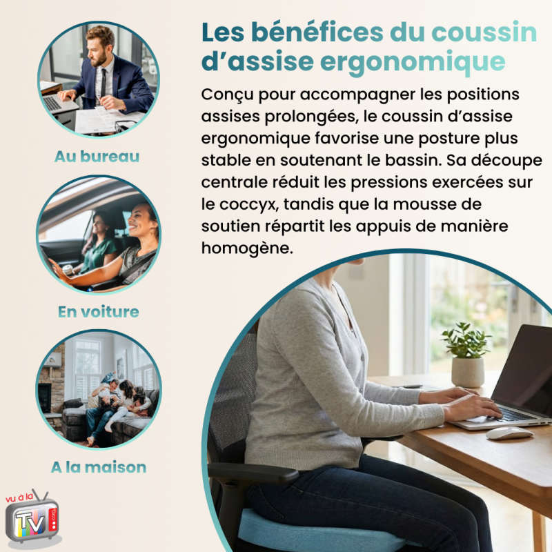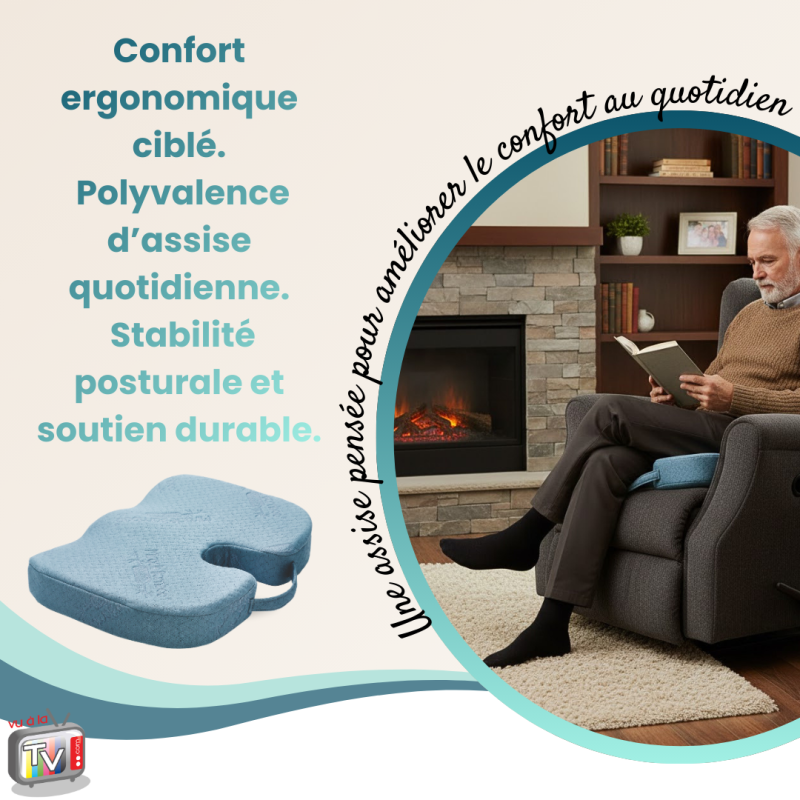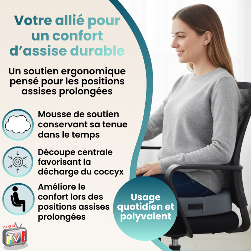 • Assise Confort : coussin ergonomique d'assise avec découpe coccyx