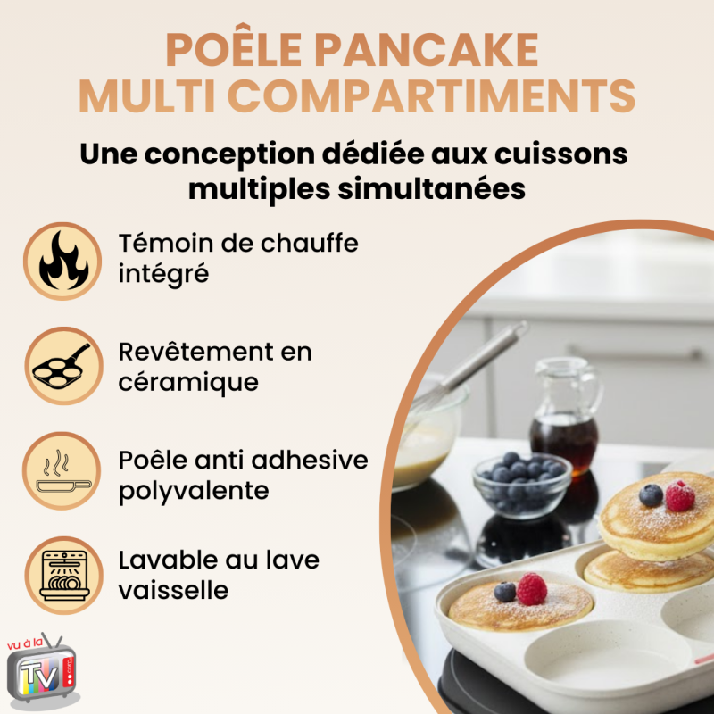 - Poêle Pancake Multi Compartiments : poêle cuisson compartimentée antiadhésive aluminium compatible induction