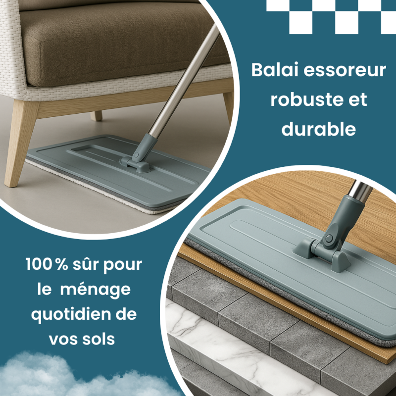 - • Adapté à toutes les surfaces – Parfait pour le carrelage, les sols stratifiés, le bois ou encore le PVC. Sa texture douce et efficace convient aussi bien aux surfaces dures qu'aux plus fragiles.