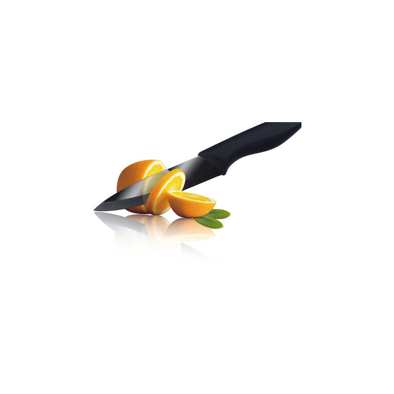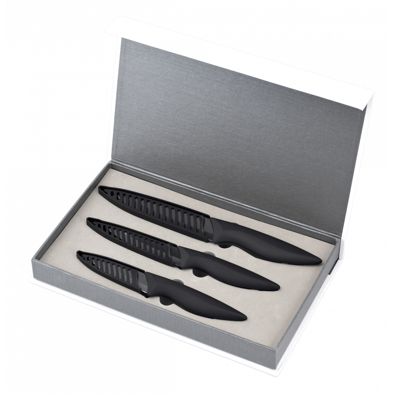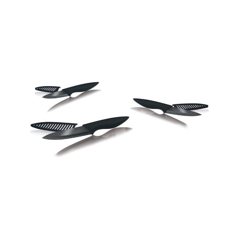 - 3 couteaux céramiques coloris noir lame miroir (dim. Lame 7,5 cm + 10cm + 12,5 cm)