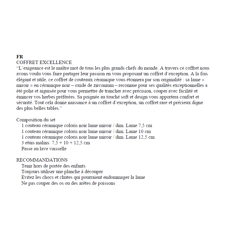 | Libellé | venteo - Coffret Couteaux Céramique Excellence |