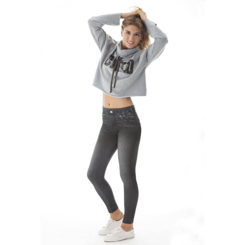 - Le jegging existe en denim bleu, noir ou gris.