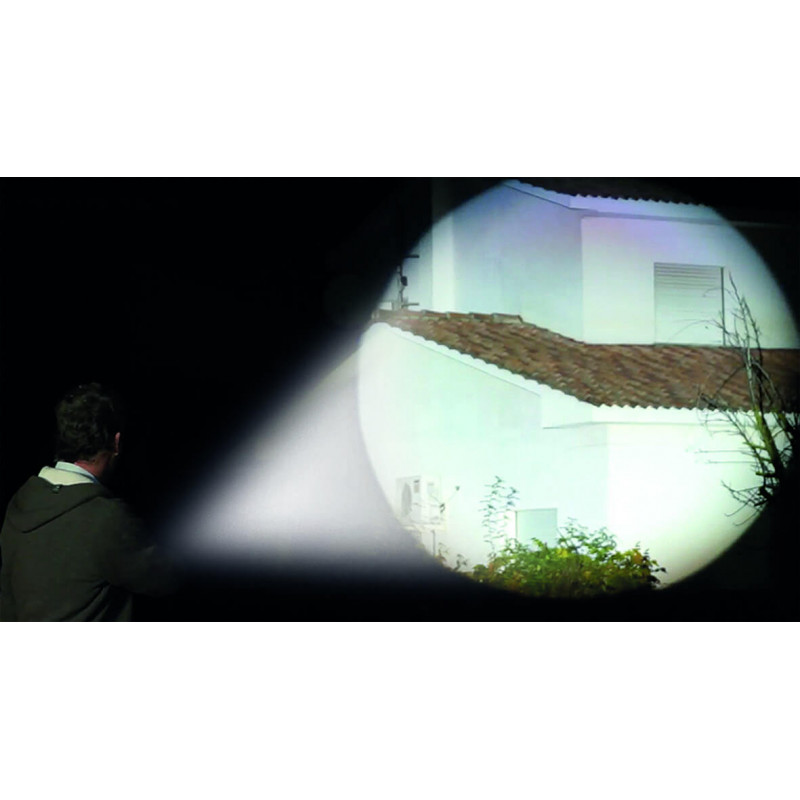 - Son faisceau lumineux très concentré permet d'avoir une fonction zoom permettant un éclairage très précis.