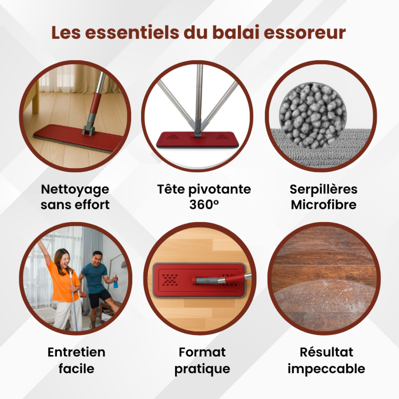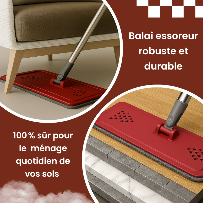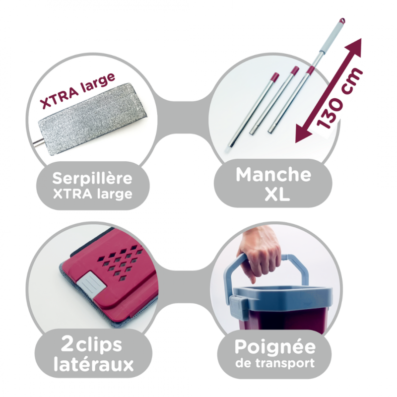 • • Gain de temps au quotidien – Grâce à sa tête extra large et à son système d'essorage rapide, vous réduisez considérablement le temps passé à nettoyer. Parfait pour une routine rapide avec votre balais nettoyer sol.