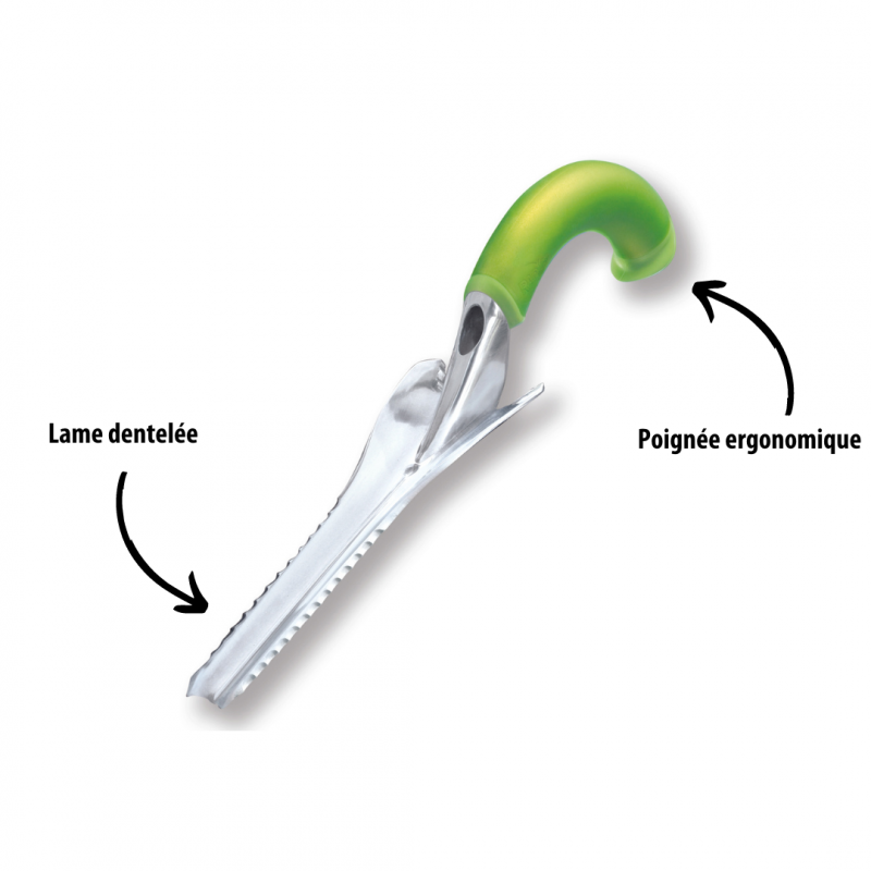 - Lame multifonctions : Les lames de ses différents outils, sont dentelées spécialement fais pour couper, creuser, déraciner, désherber ...