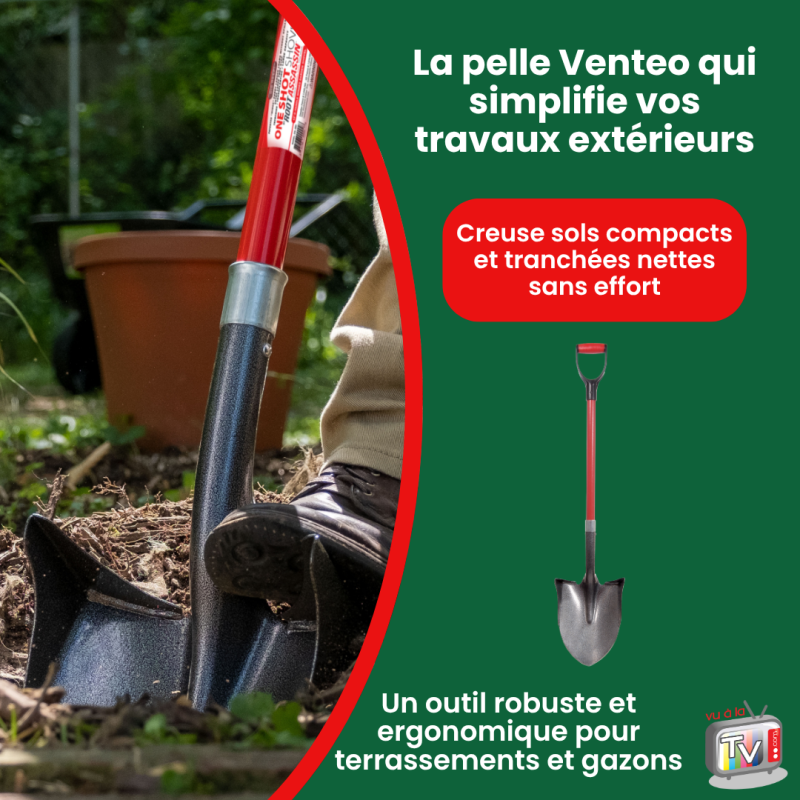 - Pelle à rebords Venteo : outil de jardinage robuste en acier carbone, doté d'une lame pointue renforcée et d'un manche ergonomique antidérapant pour des performances professionnelles à chaque utilisation.