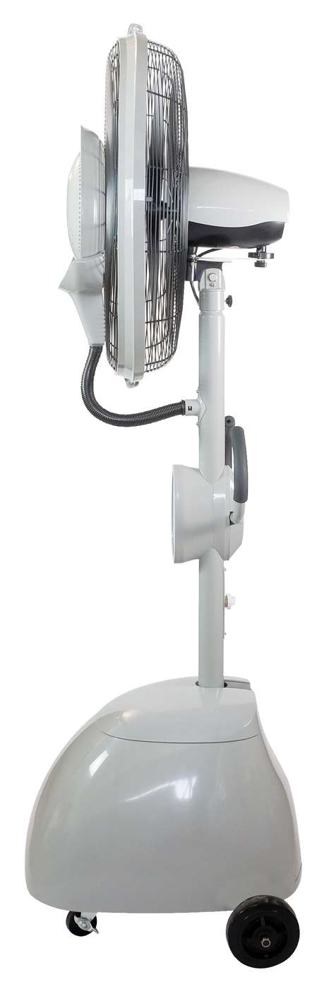 Equipé d'un réservoir d'eau important, les ventilateurs brumisateurs haute performance O'FRESH, produisent une fine brume qui est dispersée par le ventilateur. Les micro gouttelettes d'eau s'évaporent instantanément ce qui permet de rafraichir l'air jusqu'à 10°C