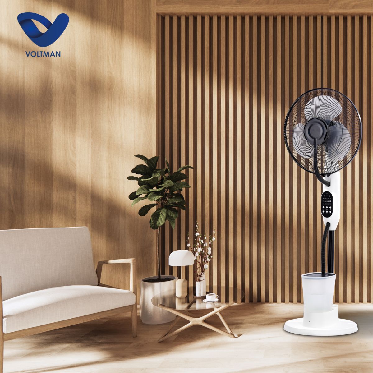 Ventilateur Brumisateur Silencieux et Oscillant - 75W - Blanc 40cm - 3 Vitesses - Voltman