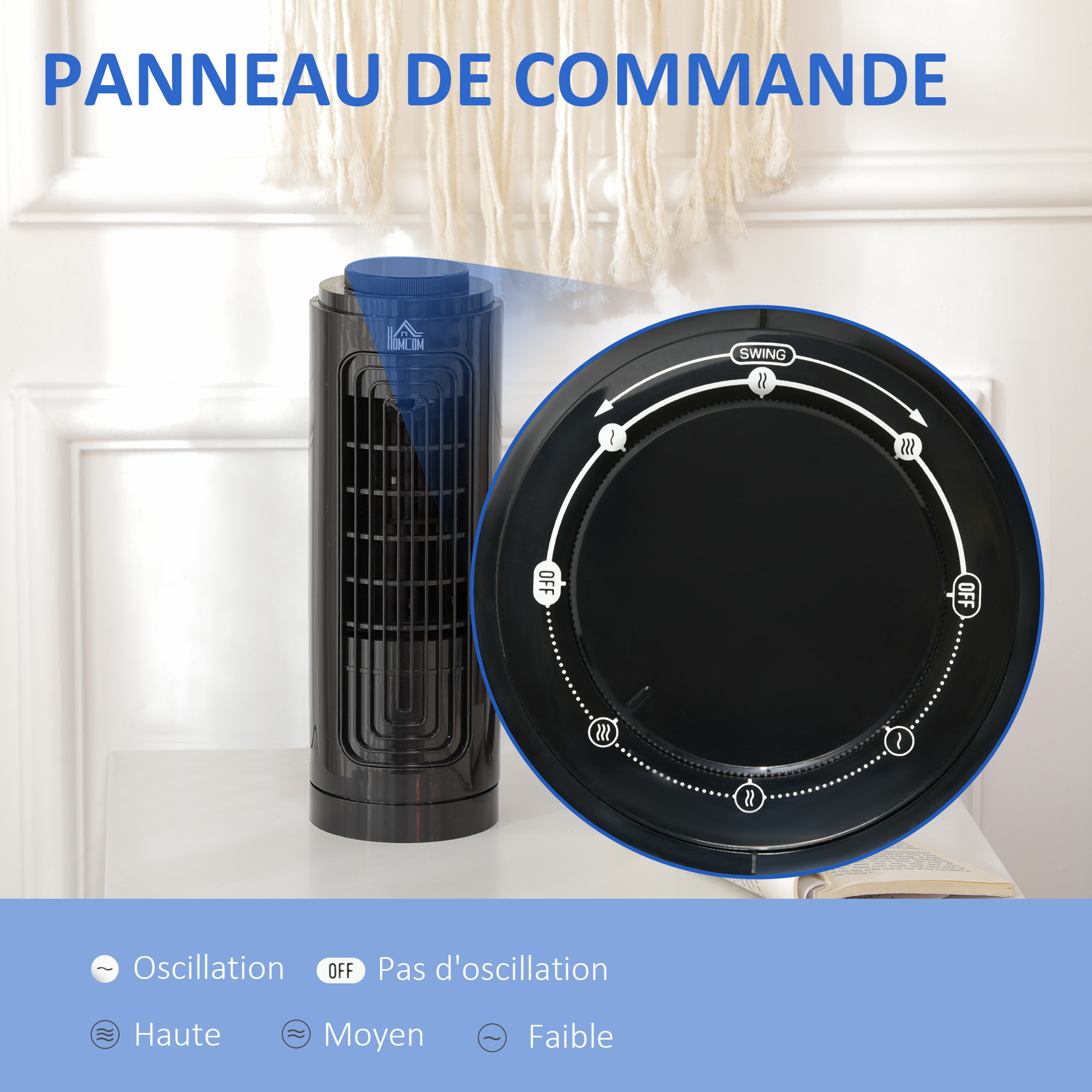 | Libellé | Ventilateur colonne oscillant 20 W silencieux - ventilateur de table bureau - 3 vitesses - noir |