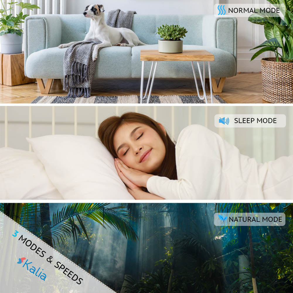 - Dans le but de s'adapter au maximum a vos besoins, cette colonne de ventilation possède 3 vitesses, plus ou moins puissantes. Elles sont réglables grâce a son écran de contrôle LED, oubliez complètement la chaleur, l'humidité et les atmosphères lourdes, réglez la vitesse ou choisissez entre ses 3 programmes de ventilation grâce à sa télécommande : Normal (réglez vous-même le débit d'air), Naturel (débit d'air variable imitant le vent naturel), Sleep (imite le vent doux nocturne, très peu bruyant).