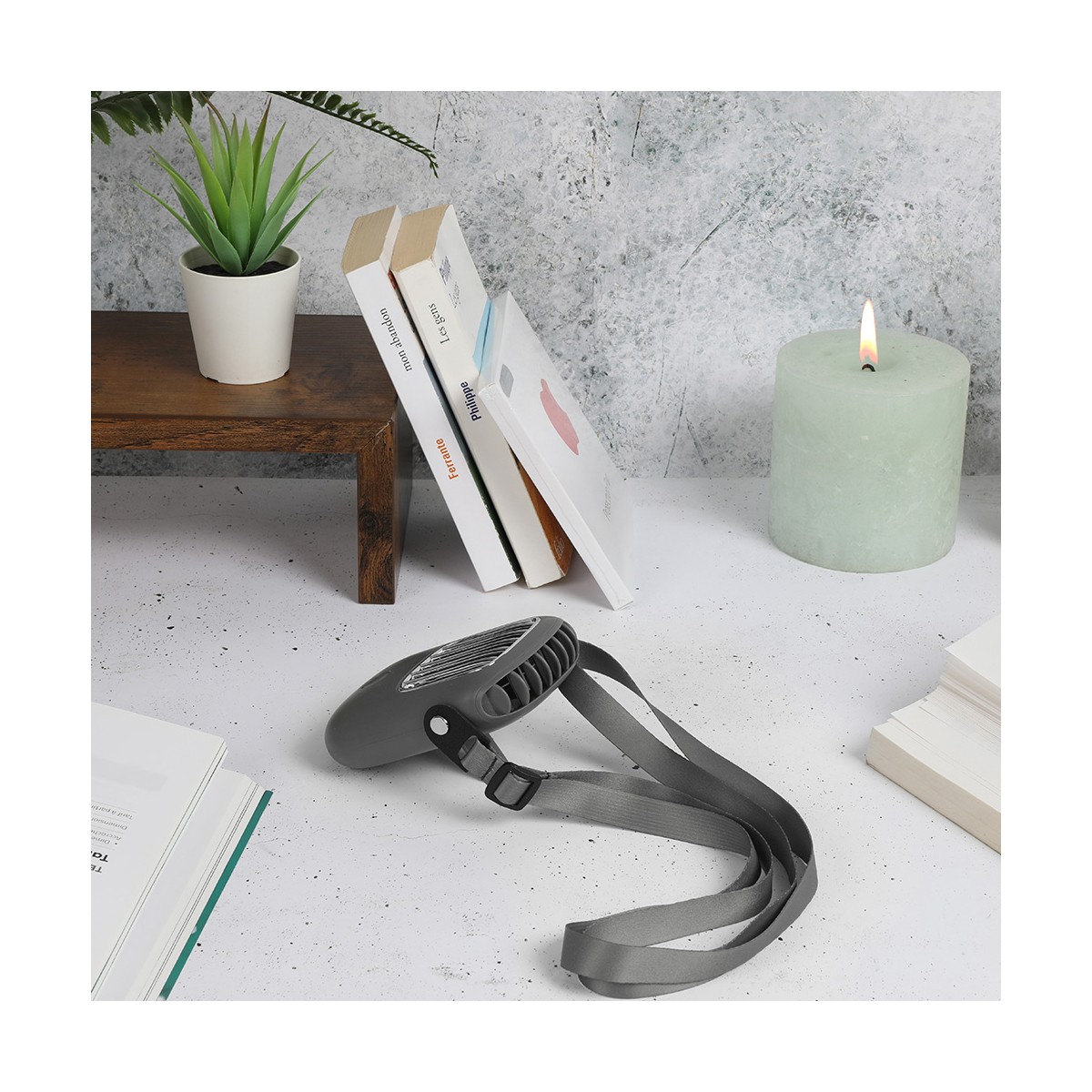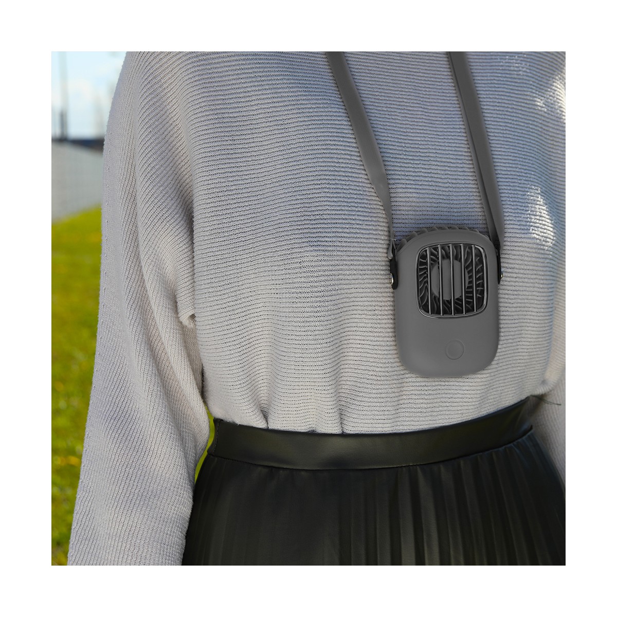 Ø 5,8 cm. 3 vitesses. Batterie lithium 2000 mAh. Jusqu'à 6 heures d'autonomie. Socle de bureau, lanière de cou réglable et câble USB de chargement inclus