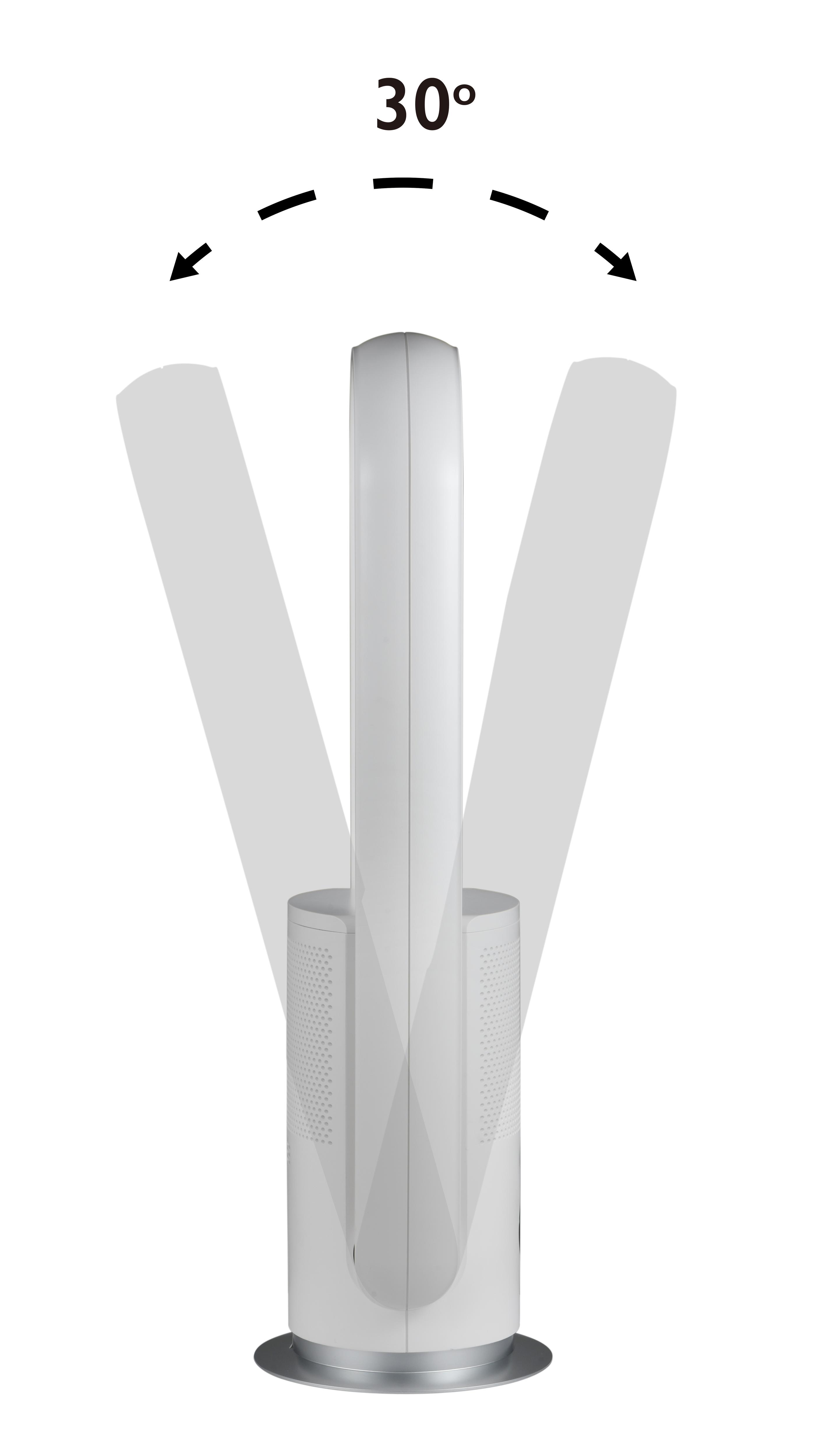 L’inclination du ventilateur sans palme permet de chasser l’air chaud et de purifier la pièce entière. J’en suis entièrement satisfaite.