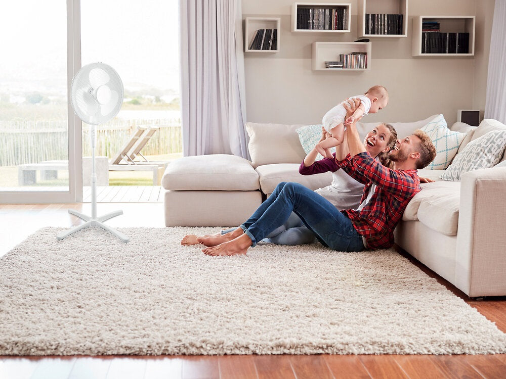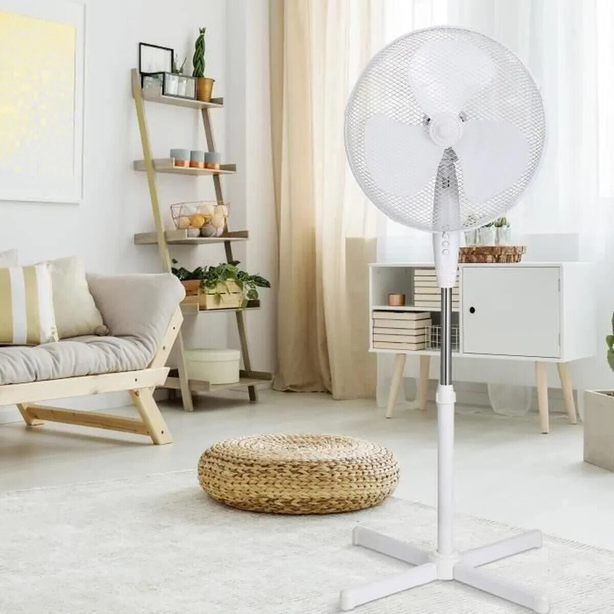 Ventilateur sur pied blanc 40cm 3 vitesses oscillation - Hauteur réglable - Silencieux