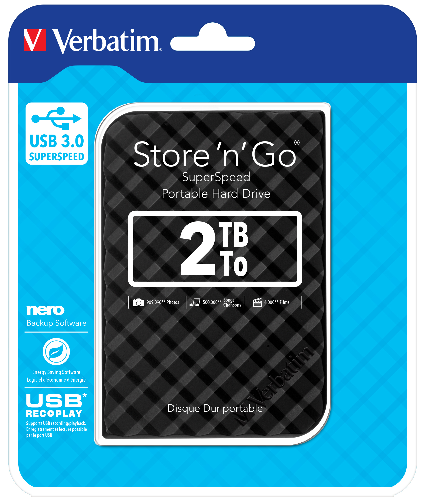 | Libellé | Verbatim Disque dur portable USB Store 'n' Go 3.0, 2 To, noir |