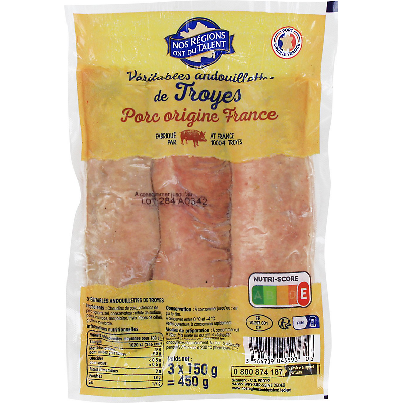 véritable andouillette de Troyes - 3 x 150 g - NOS REGIONS ONT DU TALENT