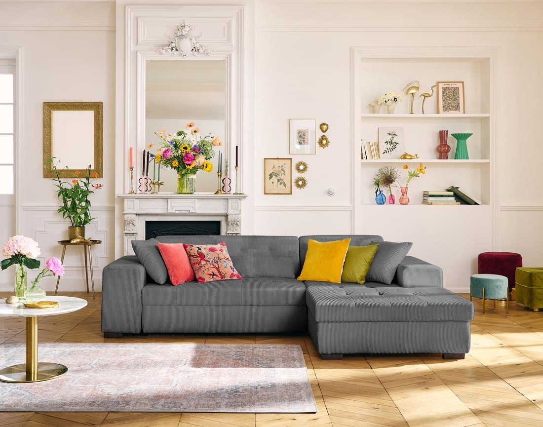 | Libellé | Vermont - canapé d'angle droit - 4 places - convertible avec coffre - en velours côtelé |