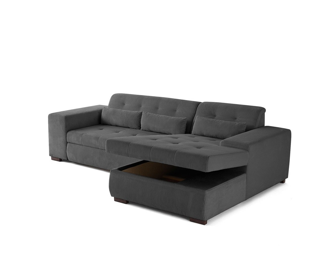 Vermont - canapé d'angle droit - 4 places - convertible avec coffre - en velours côtelé