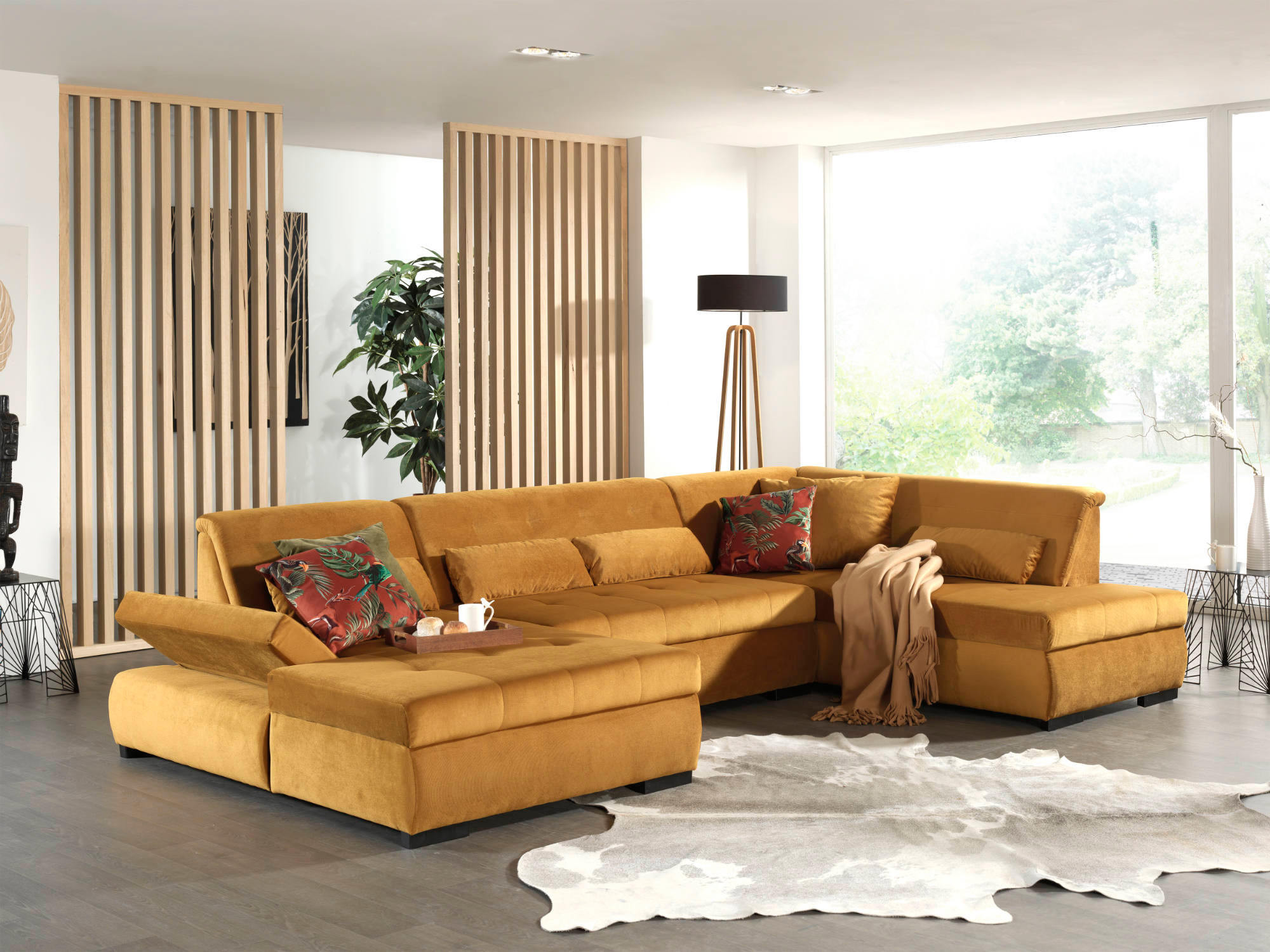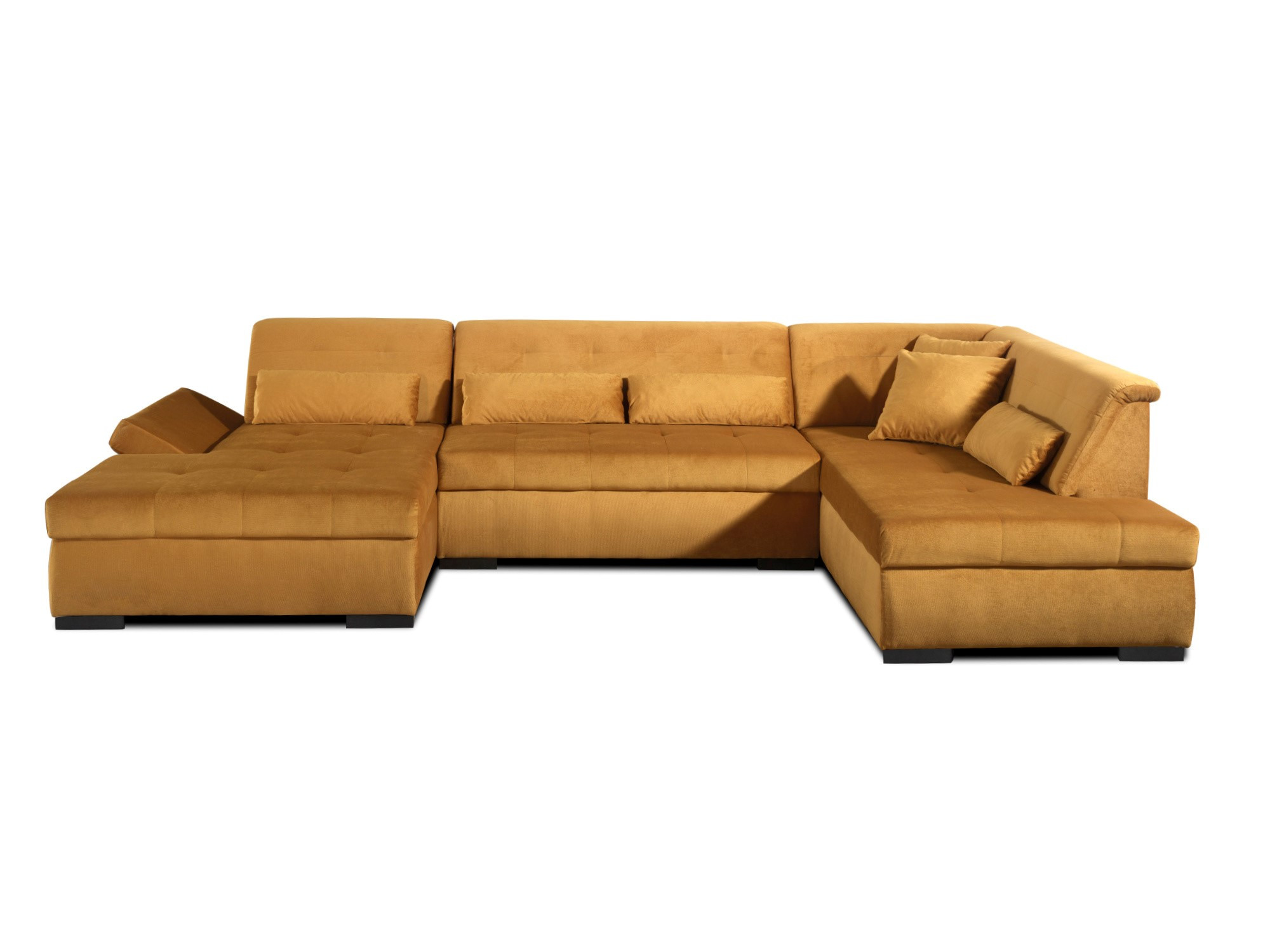 Le canapé d’angle panoramique en U Vermont vous séduira grâce à ses deux méridiennes et ses 3.35 mètres de largeur. Contemporain et moderne, il sera la pièce maîtresse de votre salon et pourra accueillir l’ensemble de vos proches grâce à son espace d’assise. Son revêtement en velours accentue l’élégance et le look moderne du canapé d’angle Vermont. Son assise, son accoudoir réglable en 3 positions et son dossier capitonnés agrémentés par des cales-reins et des coussins améliorent votre confort afin que vous puissiez vous détendre totalement.