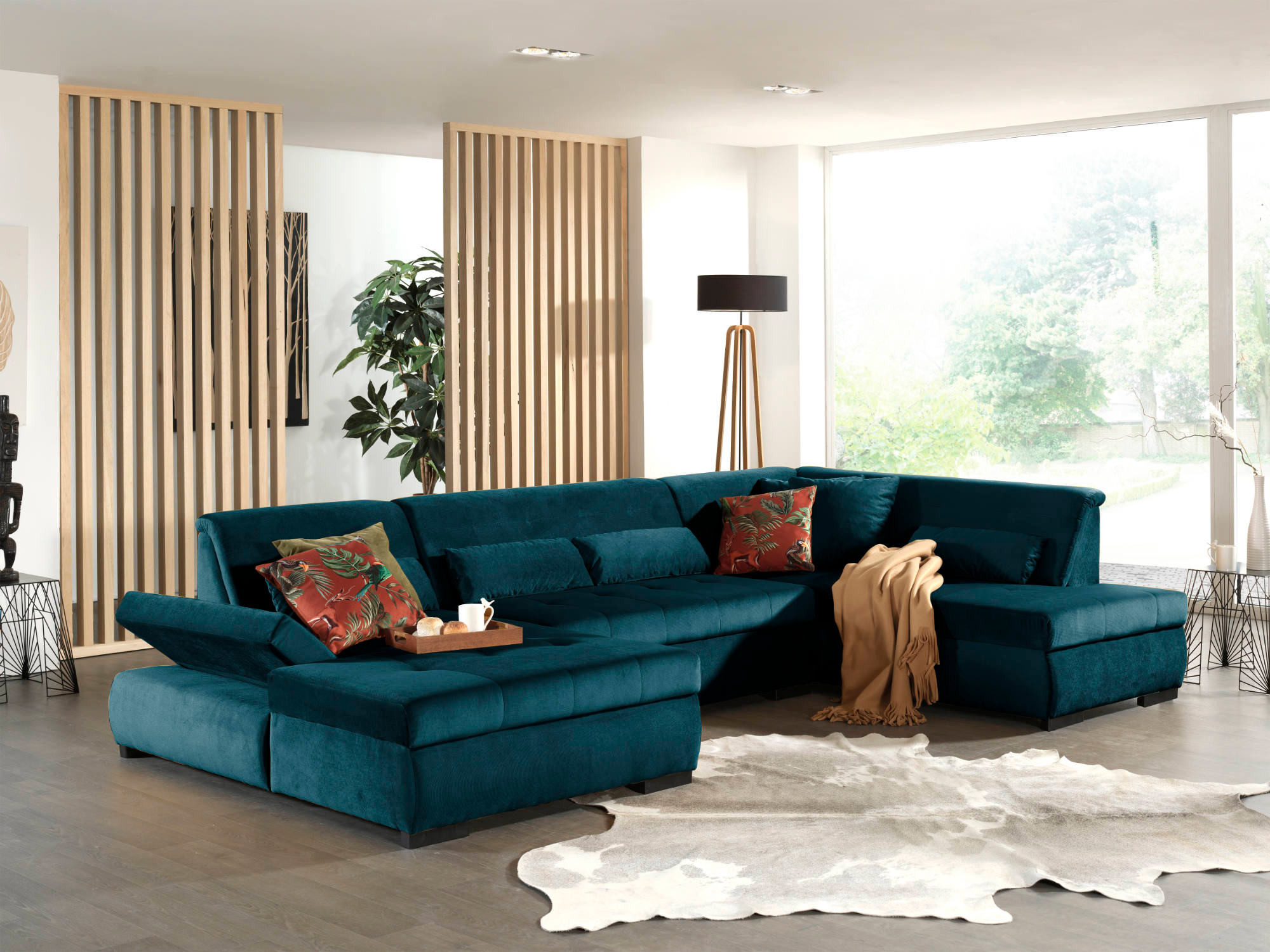 Le canapé d’angle panoramique en U Vermont vous séduira grâce à ses deux méridiennes et ses 3.35 mètres de largeur. Contemporain et moderne, il sera la pièce maîtresse de votre salon et pourra accueillir l’ensemble de vos proches grâce à son espace d’assise. Son revêtement en velours accentue l’élégance et le look moderne du canapé d’angle Vermont. Son assise, son accoudoir réglable en 3 positions et son dossier capitonnés agrémentés par des cales-reins et des coussins améliorent votre confort afin que vous puissiez vous détendre totalement.