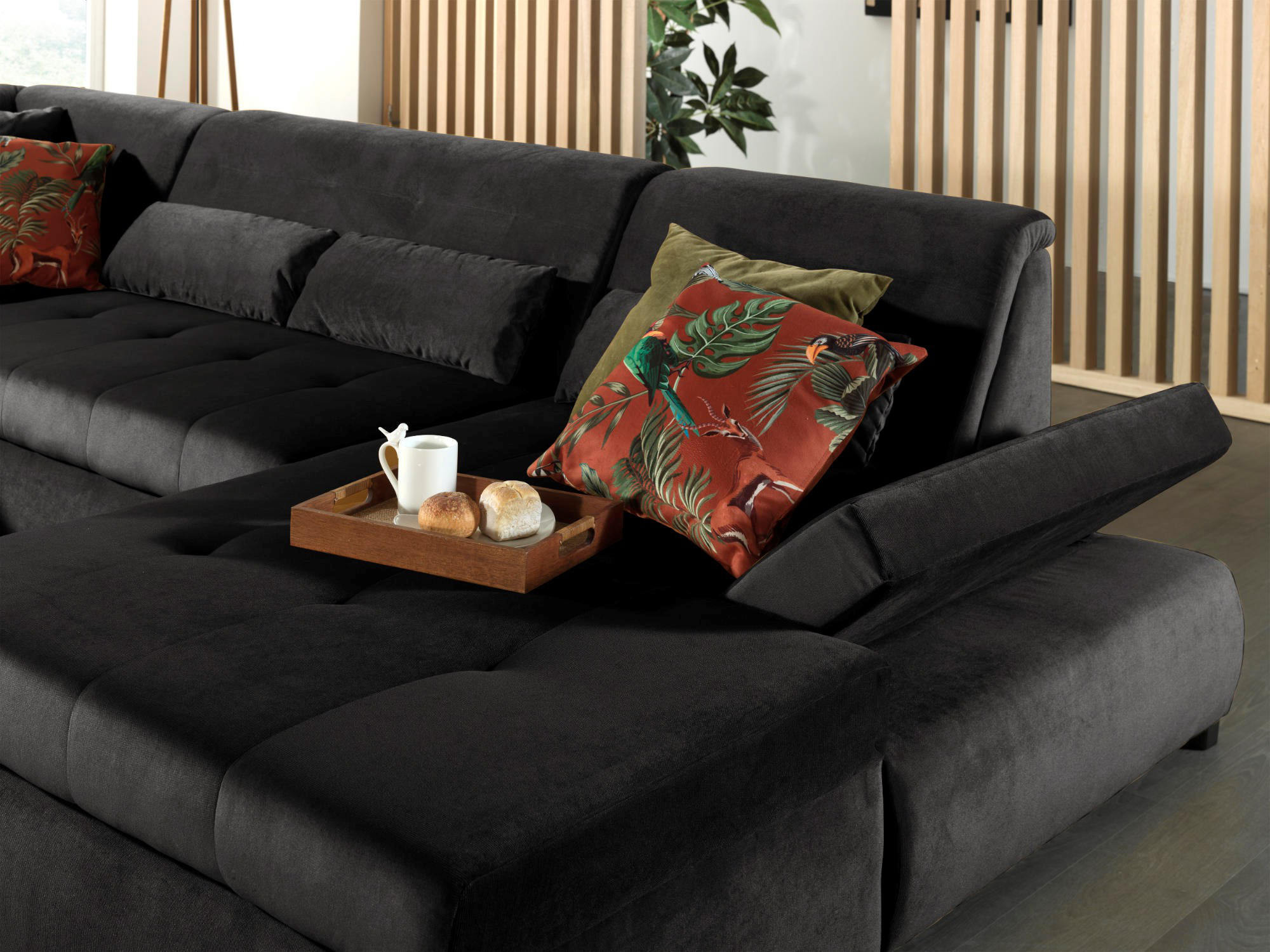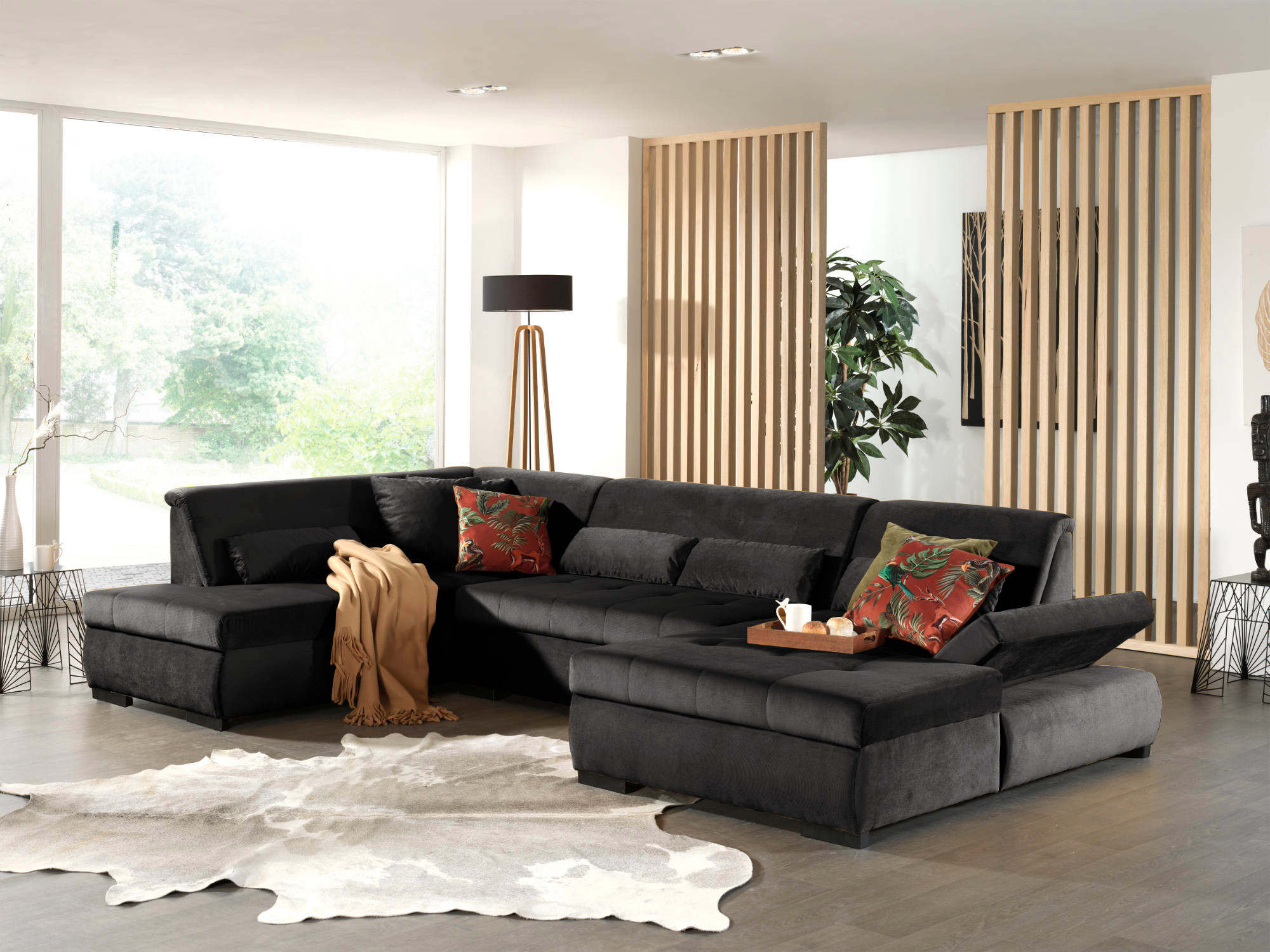 Le canapé d’angle panoramique en U Vermont vous séduira grâce à ses deux méridiennes et ses 3.35 mètres de largeur. Contemporain et moderne, il sera la pièce maîtresse de votre salon et pourra accueillir l’ensemble de vos proches grâce à son espace d’assise. Son revêtement en velours accentue l’élégance et le look moderne du canapé d’angle Vermont. Son assise, son accoudoir réglable en 3 positions et son dossier capitonnés agrémentés par des cales-reins et des coussins améliorent votre confort afin que vous puissiez vous détendre totalement.