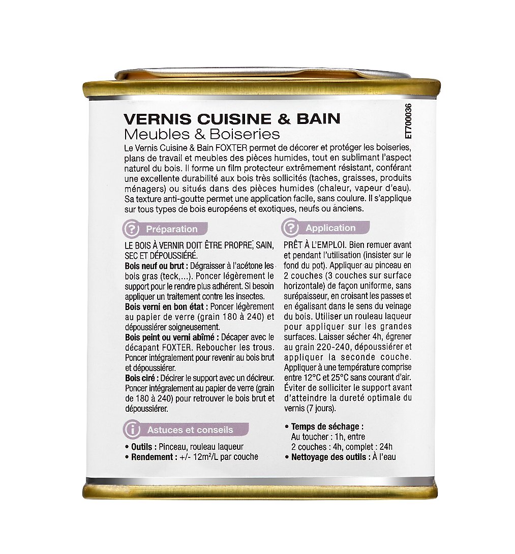 | Libellé | Vernis Cuisine & Bain, Incolore, 0,25L - Sélection d'Experts - Foxter |