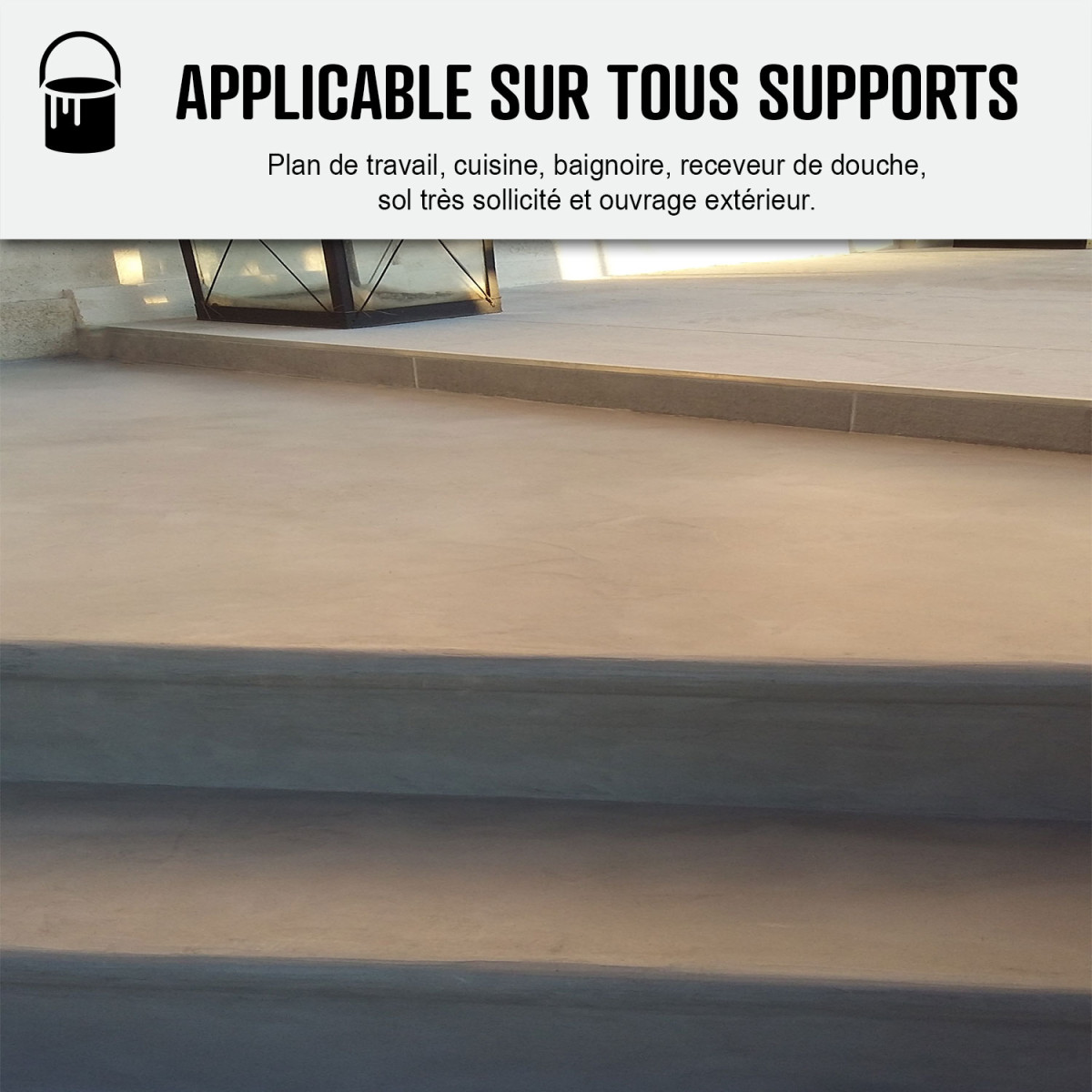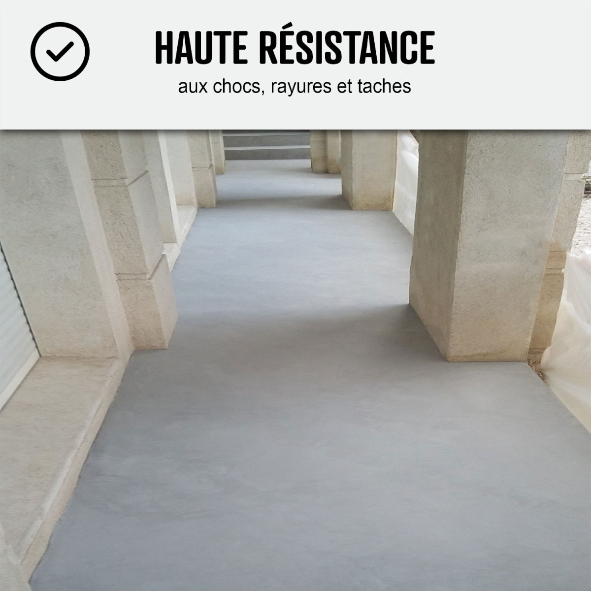 Vernis polyuréthane bi-composant transparent pour béton ciré et protection résine époxy arcapoxy, extrêmement résistant aspect satiné.