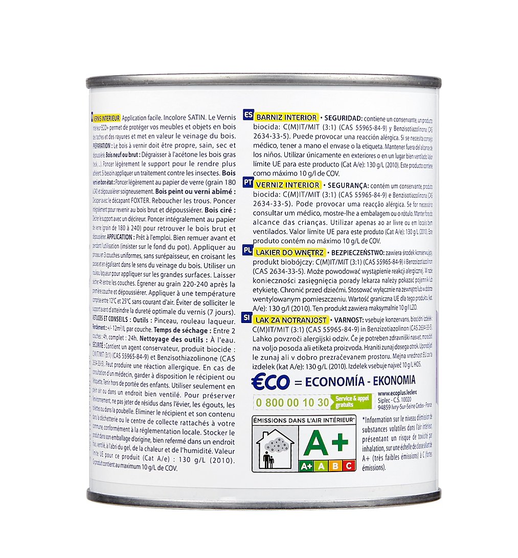 | Libellé | Vernis intérieur, Incolore, 0,75L - ECO+ |