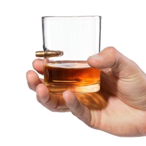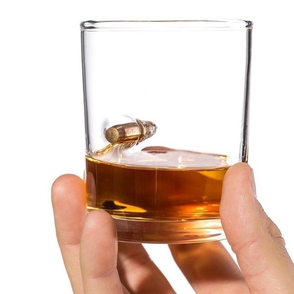Ce verre à whisky avec balle incrustée est le cadeau à offrir absolument à un policier ou à un militaire qui aime le whisky. C'est un article intriguant qui impressionnera également vos invités. La balle est vraie mais sans aucun danger.* Matière : verre * Dimensions : 8 x 8 x 9,8 cm * Capacité : 278 ml * Lavage à la main uniquement Fonctions : verre Contenu : 1 verre avec vraie balle incrustée