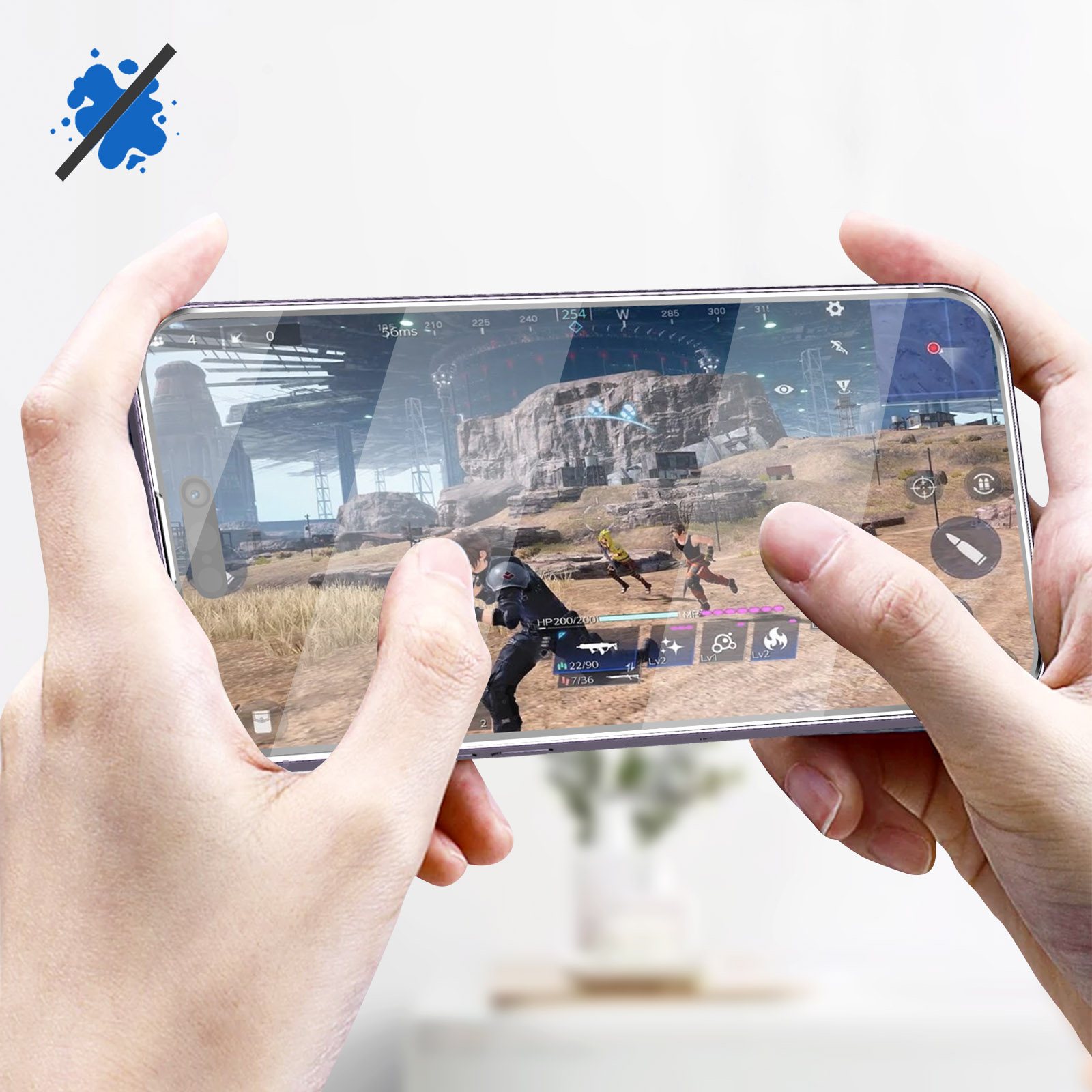 Verre Trempé iPhone 14 Pro Max Biseauté Adhésion Totale Blue Star Transparent