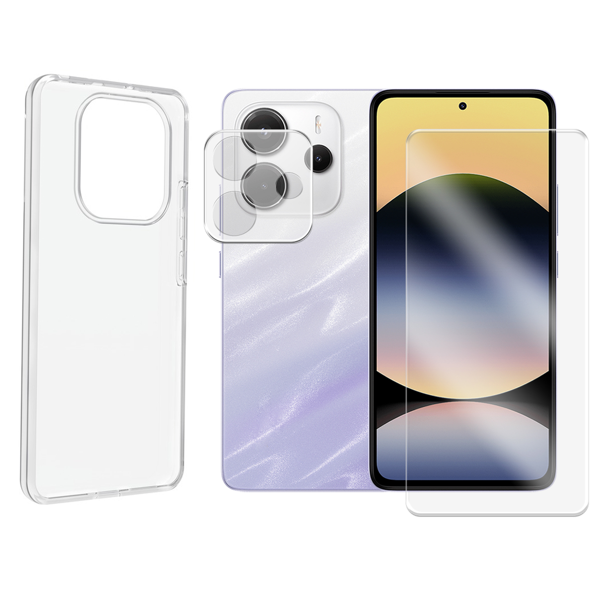 Verre Trempé pour Xiaomi Redmi Note 14 5G 6.67" + Verre Trempé Caméra Arrière + Coque transparente souple