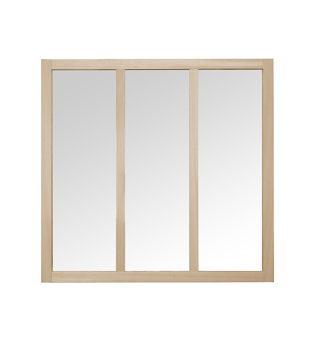 Verrière 3 carreaux en kit, Obéché brut à peindre, 112,3 x 108 x 4 cm, verres trempés