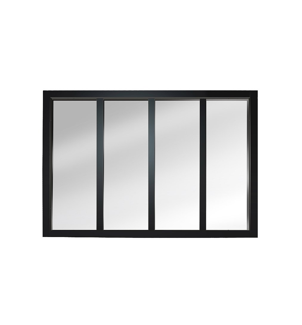 Cette verrière Atelier 4 carreaux en kit, est en Obéché enrobé de papier coloris noir effet métal, dimensions 147,8 x 108 x 4 cm, elle est composée de 4 vitrages en verre trempé. Elle est idéale pour séparer les espaces tout en laissant passer la lumière, le châssis est prépercé, elle est facile à monter