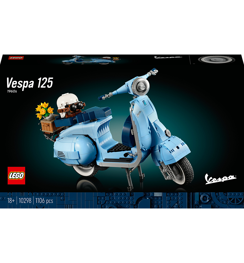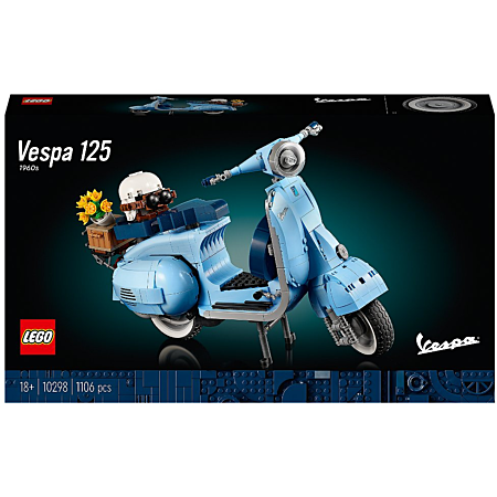 Construisez et exposez votre propre version de la Vespa Piaggio avec ce set de construction immersif LEGO® Vespa 125 destiné aux adultes.Une icône du style italien. Un symbole de liberté. Un hommage à la Dolce Vita. La Vespa Piaggio est tout cela et plus encore. Vous pouvez maintenant construire et exposer votre propre modèle réduit - plongez dans un projet de construction plein de finesse et de style avec cet ensemble de modèles réduits de scooters LEGO Vespa 125 (10298) pour adultes. Pour célébrer le 75e anniversaire de Vespa, les concepteurs LEGO ont travaillé en étroite collaboration avec la marque pour recréer cette maquette à construire étonnante et immersive, spécialement pour les adultes.Comme l'original, cette maquette recrée les lignes élégantes et douces et tous les détails de l'original, avec de belles touches de finition, notamment le logo Vespa et une plaque d'immatriculation italienne classique des années 1960. Inspiré de la Vespa Piaggio classique des années 1960, ce scooter LEGO est livré en bleu pastel, une couleur LEGO très rare qui plaira certainement aux fans de construction.Développez votre créativité. Développez votre concentration. Constituez la collection de véhicules de vos rêves avec des modèles réduits de véhicules exclusifs et authentiques conçus spécialement pour les adultes, et appréciez le plaisir d'un projet minutieux en réalisant tous les détails d'un modèle à exposer avec fierté.Ce modèle de présentation de collection mesure plus de 22 cm de haut, 12 cm de long et 35 cm de large.Nombre de pièces : 1107 piècesÂge : 18+