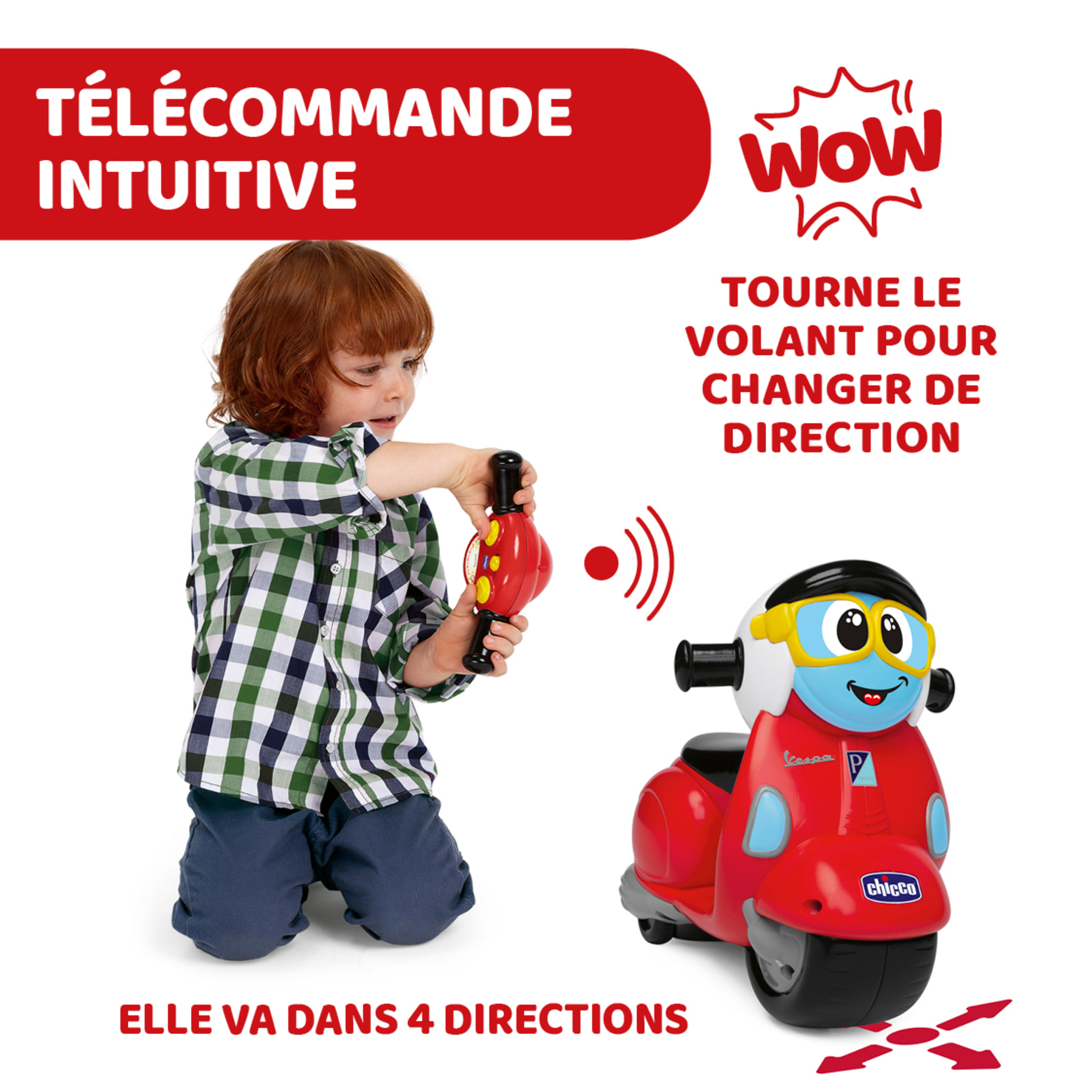 L'iconique Vespa en version télécommandé. Télécommande intuitive. Pour plus de réalité retrouvez les bruits de la rue et du moteur.
