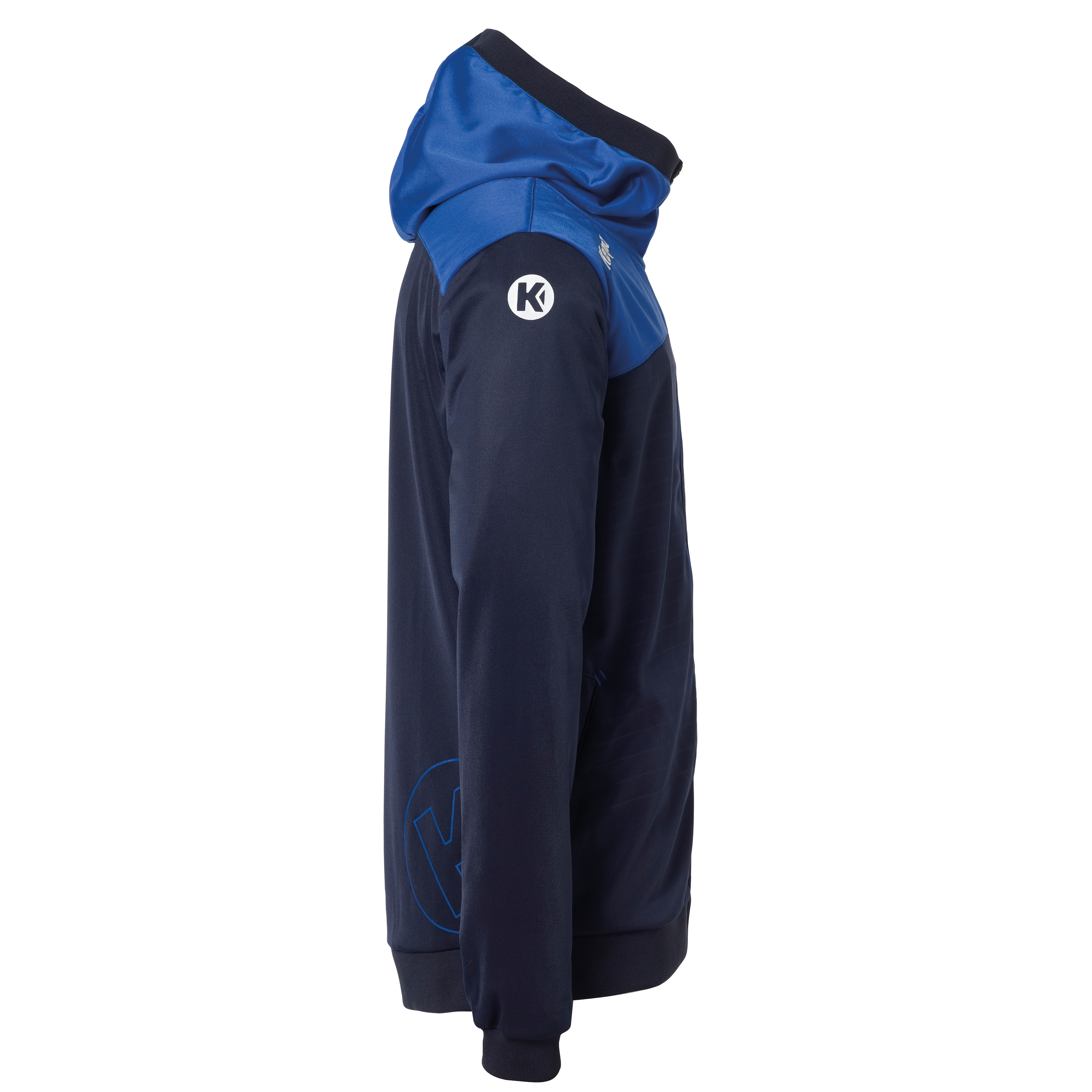 design coupé et cousu sur le devant et le dos- lignes gaufrées sur la face avant- poches latérales avec fermeture éclair- capuche avec nervure- bord côte élastique à l'ouverture des manches et de la taille- Broderie Kempa et imprimés logo Kmatériel :100% polyester