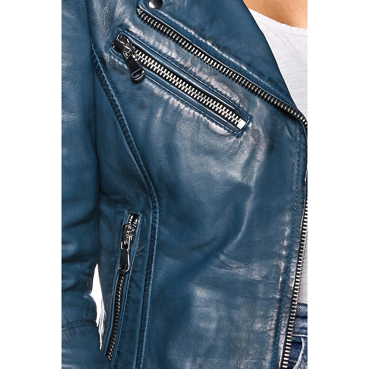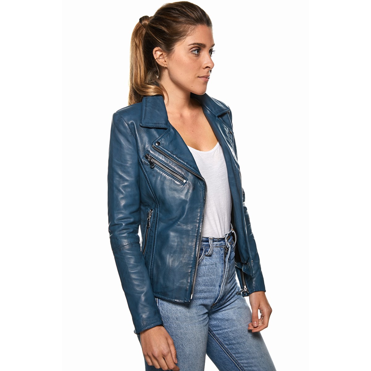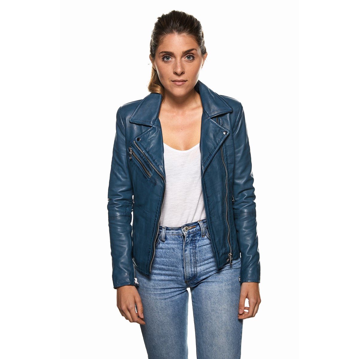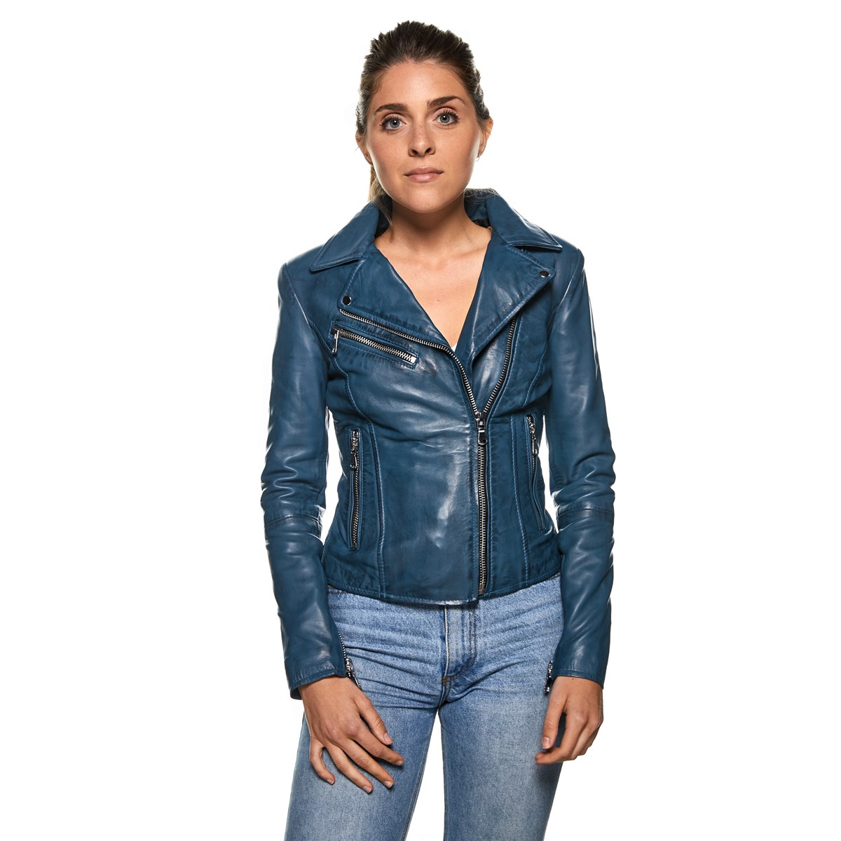 - Veste en cuir 100% agneau véritable