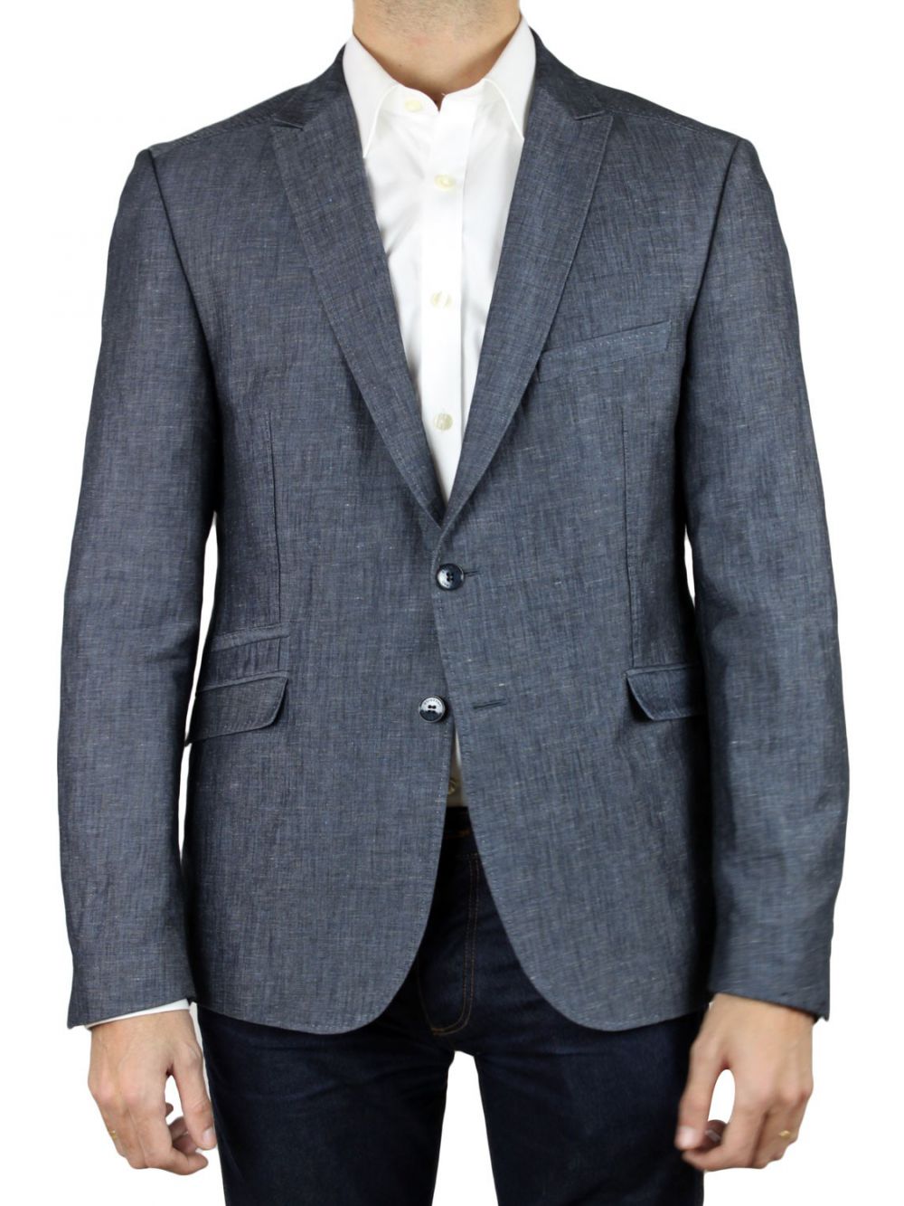 Cette superbe veste moderne très belle tenue, idéale pour cultiver un look de dandy cet été. Vous pourrez la porter facilement avec un jeans et une chemise. Veste slim fit fermée par 2 boutons, col piquée avec une surpiqûre soignée sur le bord du col ainsi que sur la poche poitrine, 2 poches à rabats passepoilées, 1 poche passepoillée discrètement placée au dessus de la poche coté droit et une poche poitrine, multiples poches intérieures, entièrement doublée d'une doublure s'accordant avec la veste. 4 boutons aux poignets et 2 fentes dans le dos