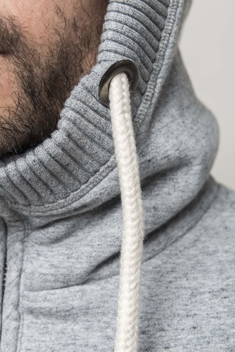 - Bord-côte 4x4 au col, au pourtour de la capuche, au bas des manches et au bas du vêtement.