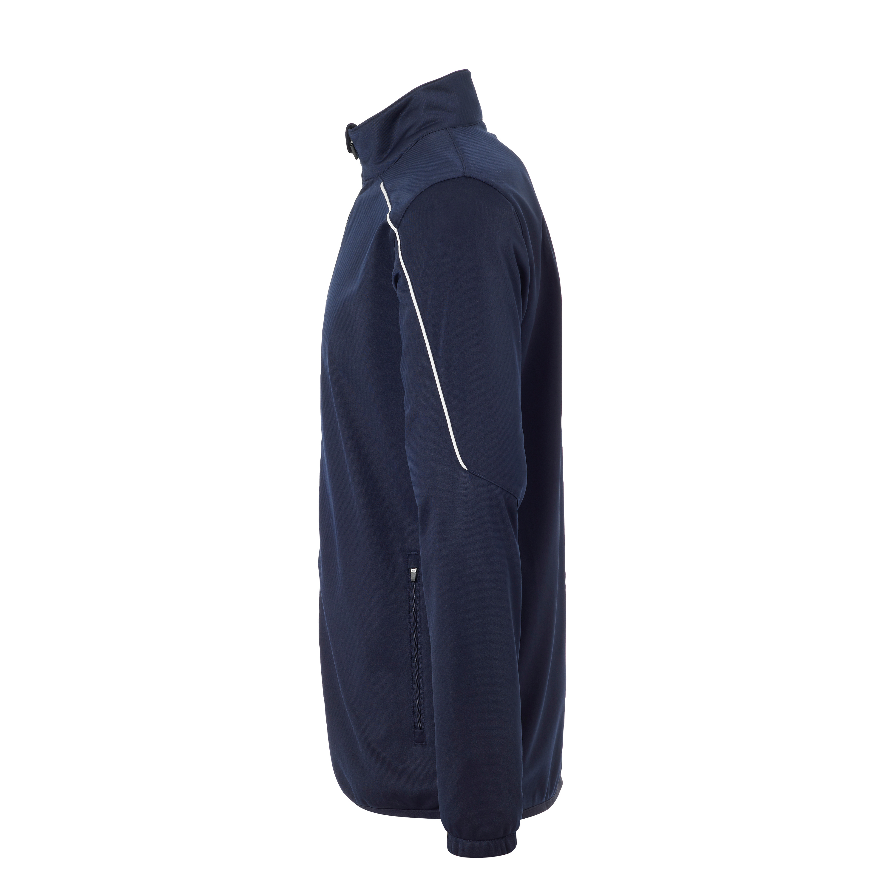 Veste de survêtement inserts élastiques aux manches manches Liseré sur la poitrine et les manches. Deux poches latérales avec fermeture éclair Lien élastique sur la capuche, les manches et la ceinture. Fermeture éclair dans la partie arrière pour favoriser l'impression. Libellé Uhlsport sur la poitrine.