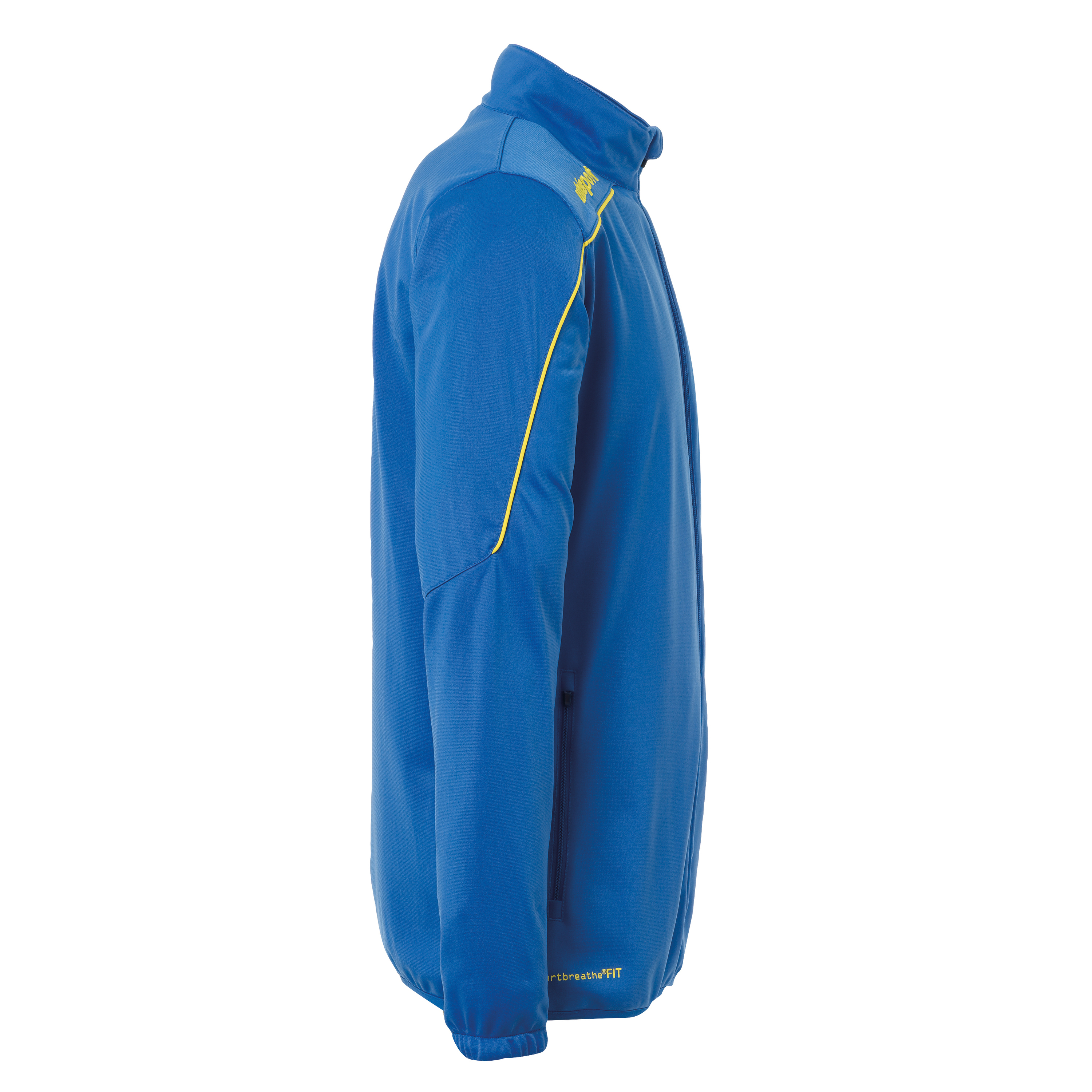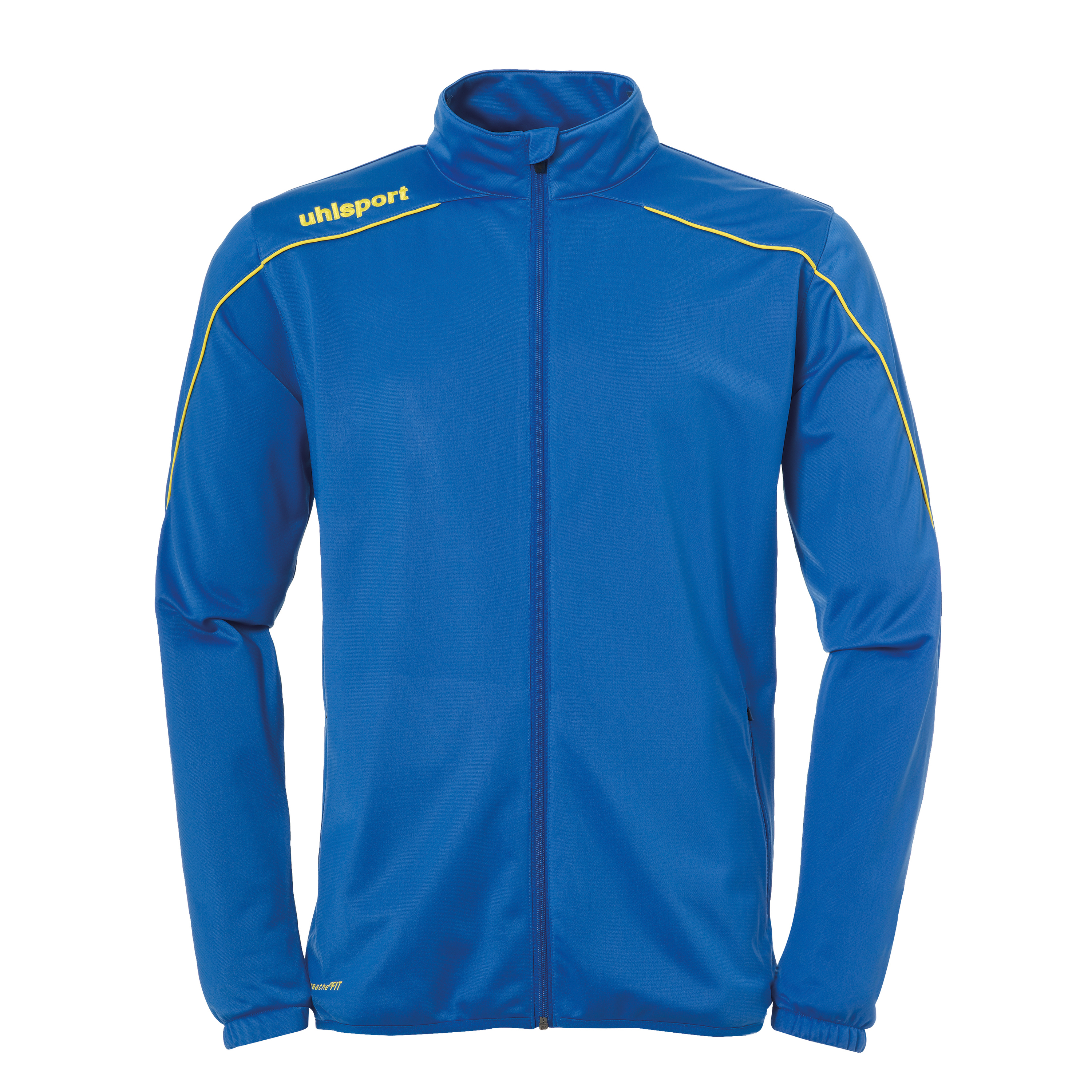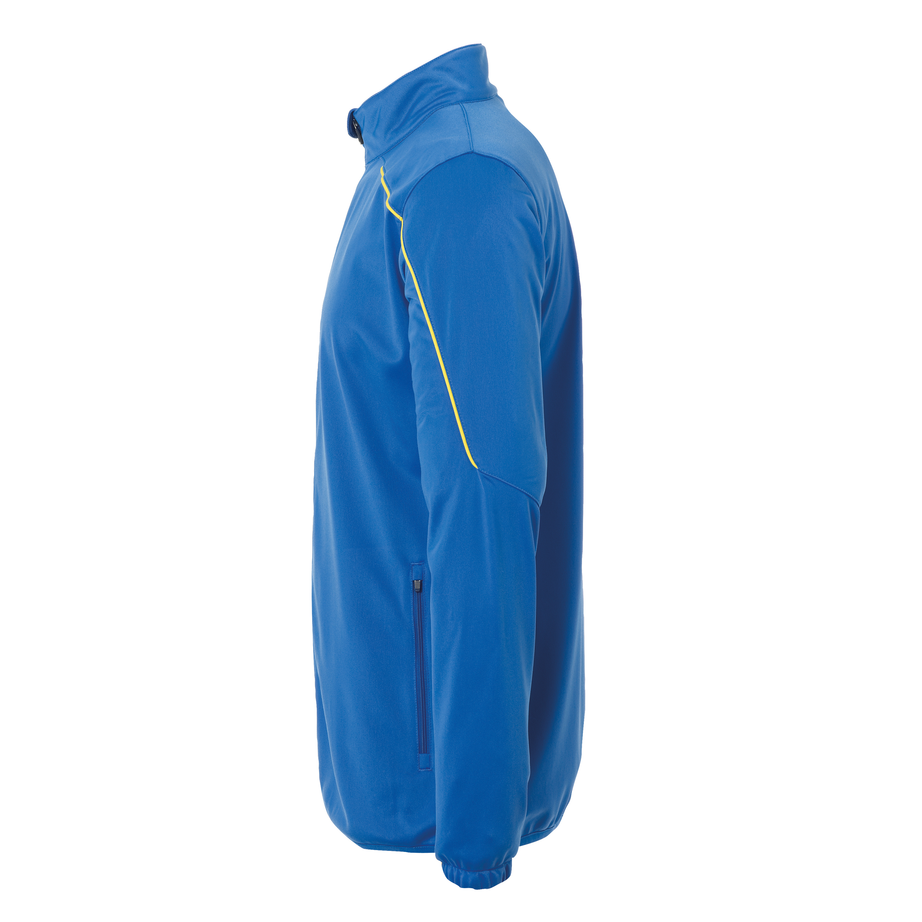 Veste de survêtement inserts élastiques aux manches manches Liseré sur la poitrine et les manches. Deux poches latérales avec fermeture éclair Lien élastique sur la capuche, les manches et la ceinture. Fermeture éclair dans la partie arrière pour favoriser l'impression. Libellé Uhlsport sur la poitrine.