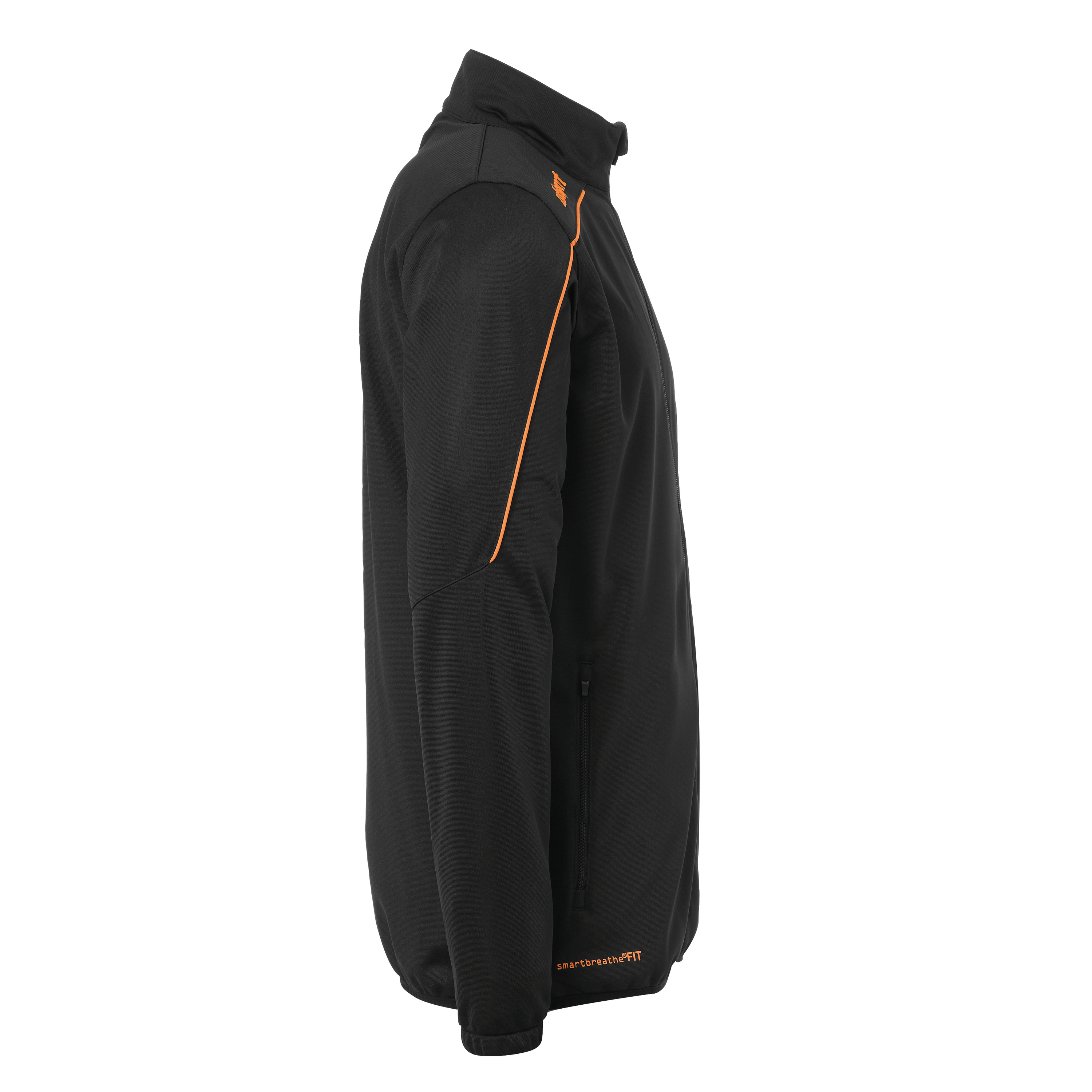 Veste de survêtement inserts élastiques aux manches manches Liseré sur la poitrine et les manches. Deux poches latérales avec fermeture éclair Lien élastique sur la capuche, les manches et la ceinture. Fermeture éclair dans la partie arrière pour favoriser l'impression. Libellé Uhlsport sur la poitrine.