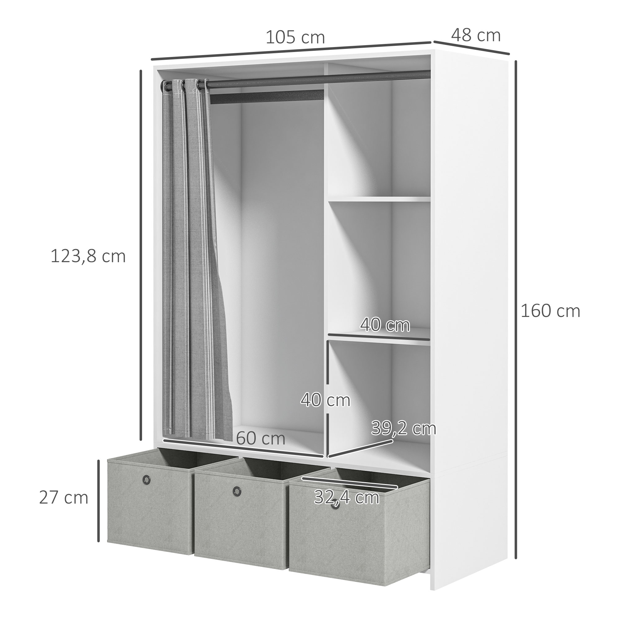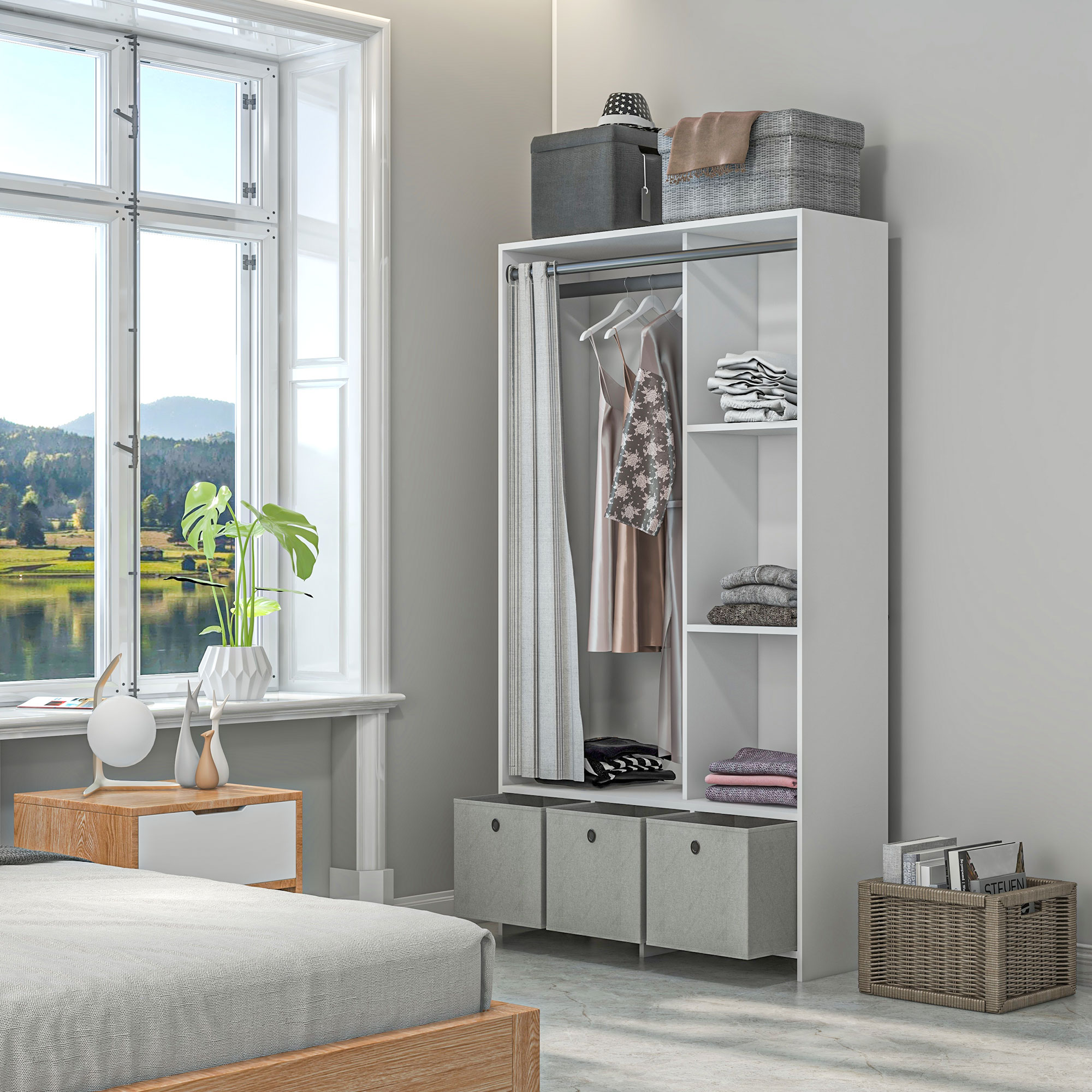 - Multi-rangement : barre de penderie, 3 niches, 3 tiroirs tissu