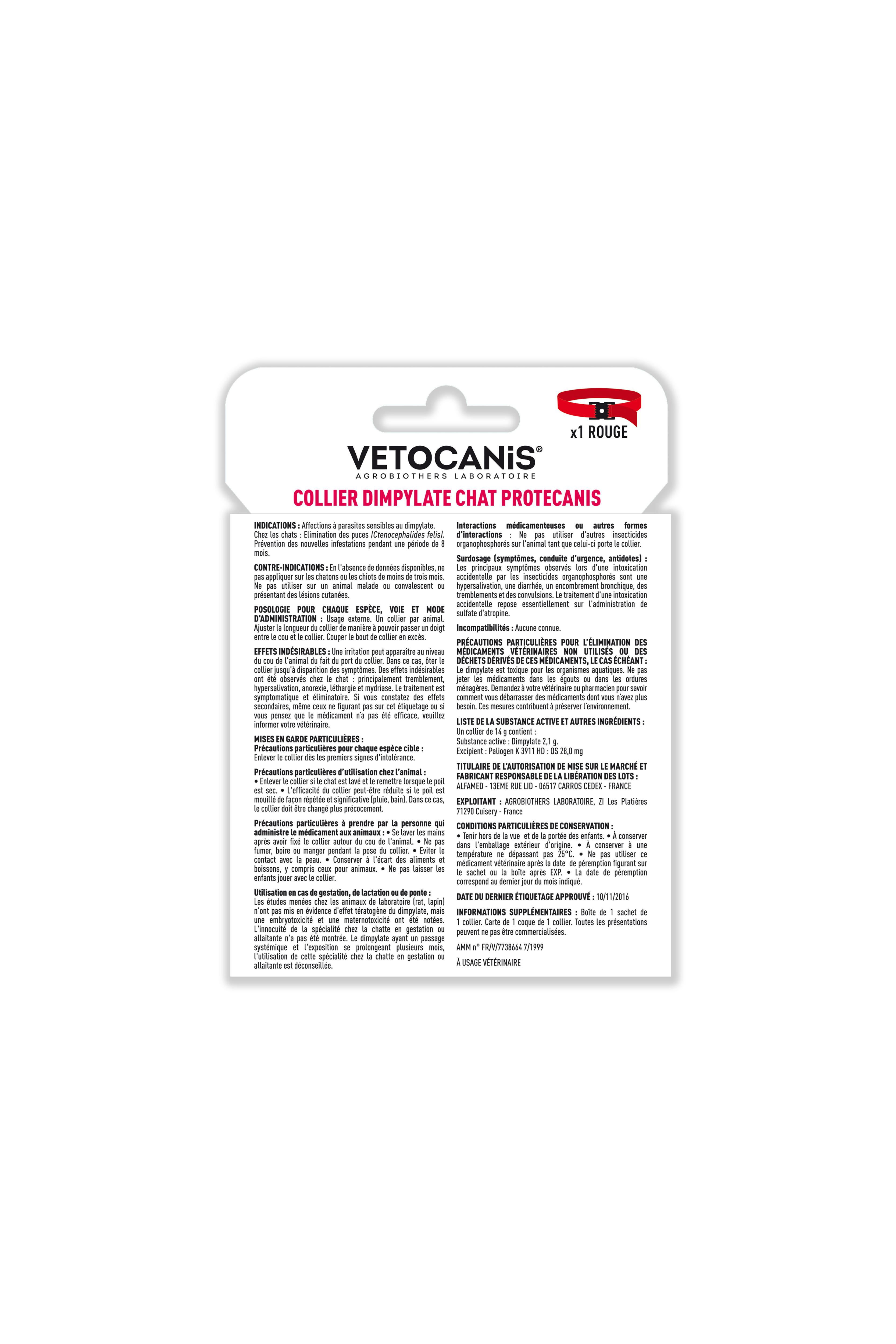 | Libellé | Vetocanis action protec collier dimpylate chat, rouge |