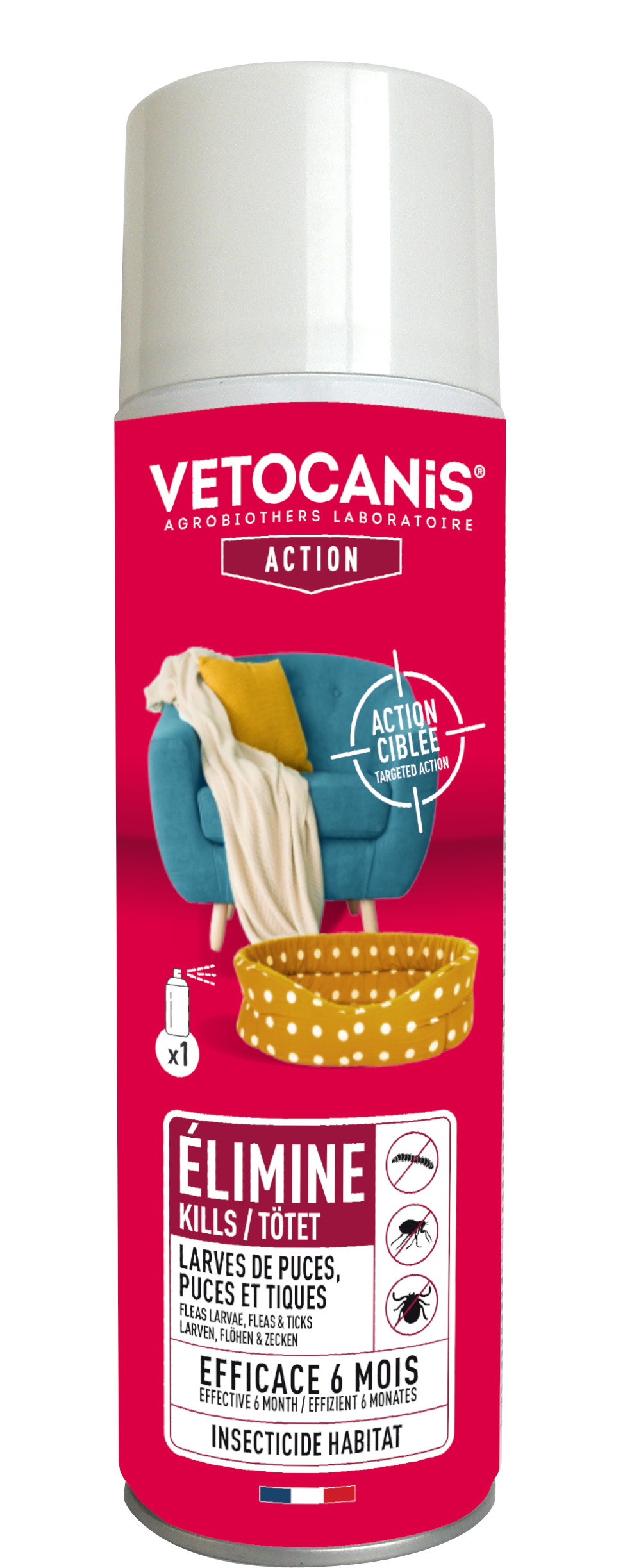 Libellé VETOCANIS Spray anti-puces et anti-acariens pour la maison - 500 ml - Pour chat et chien