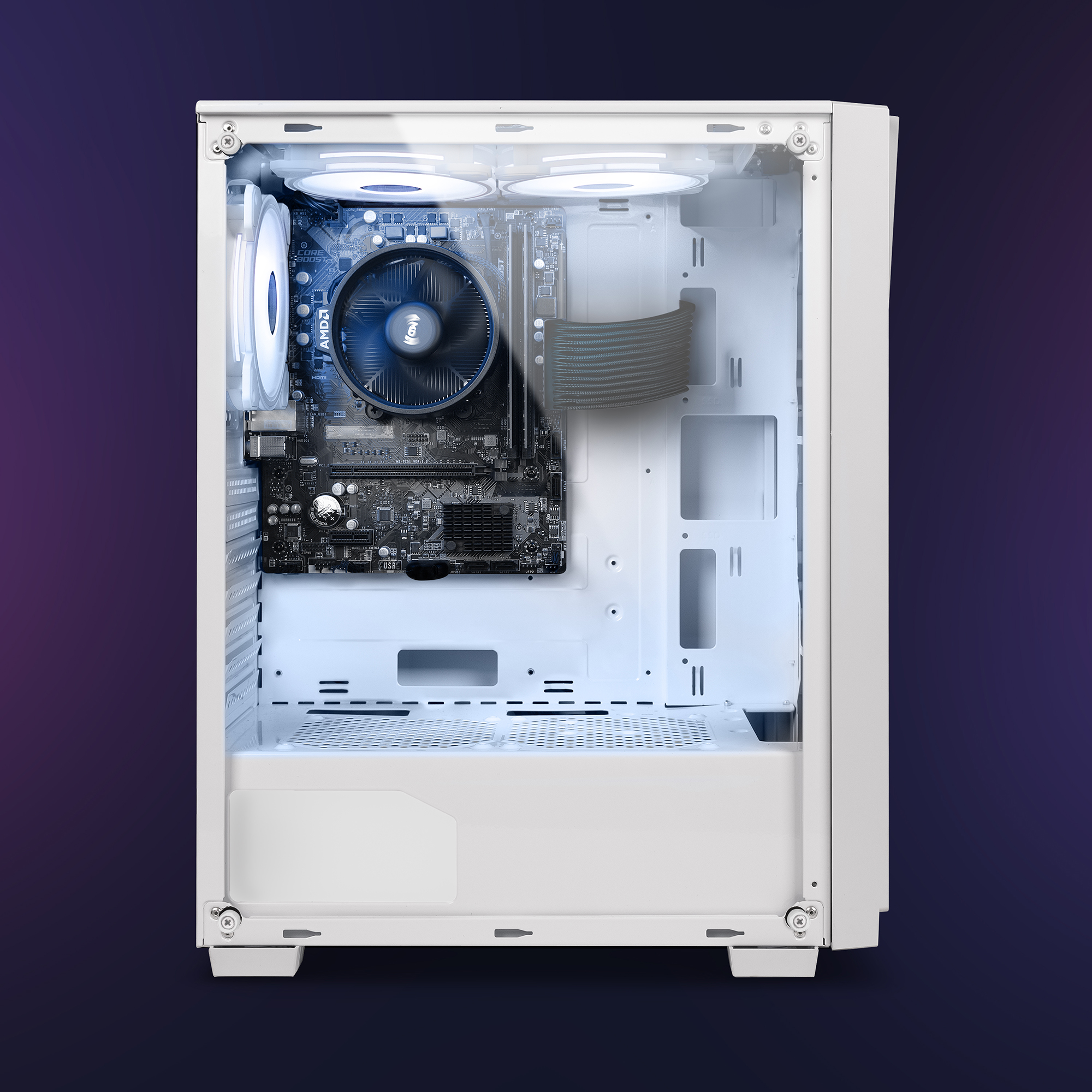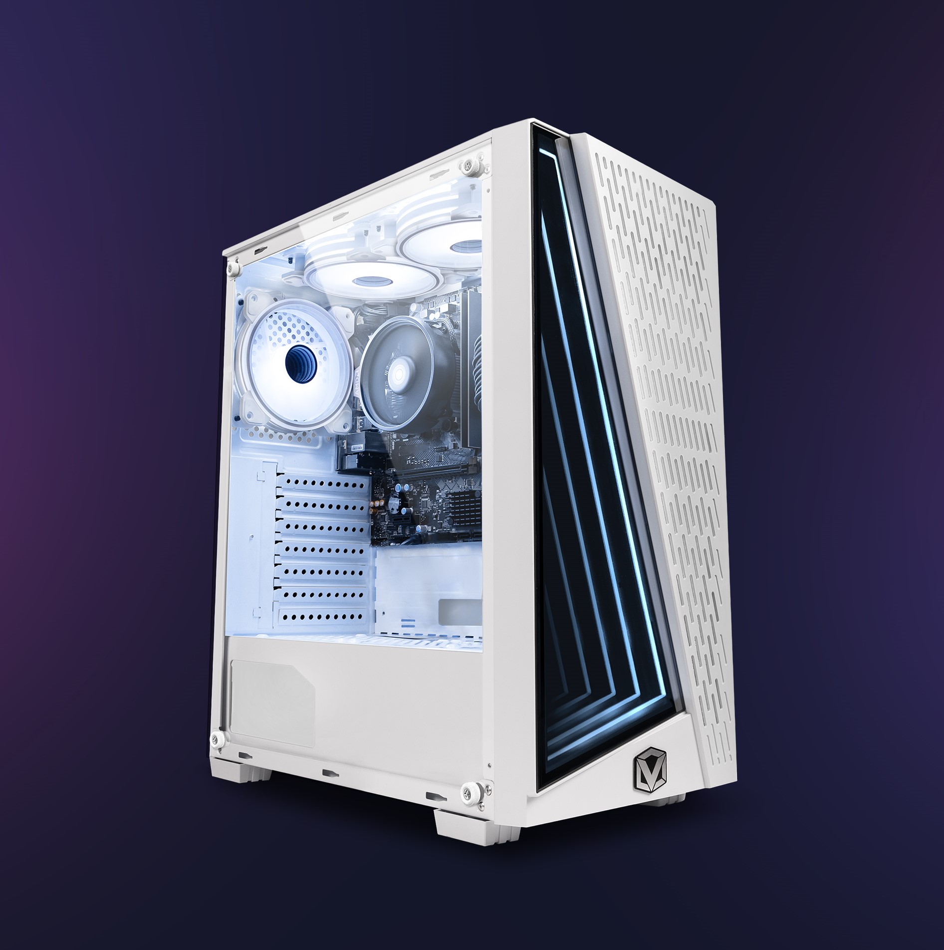 ✔ Boîtier: Boîtier gaming Vibox VTX-2 blanc avec panneau latéral en verre trempé et panneau avant à effet miroir infini