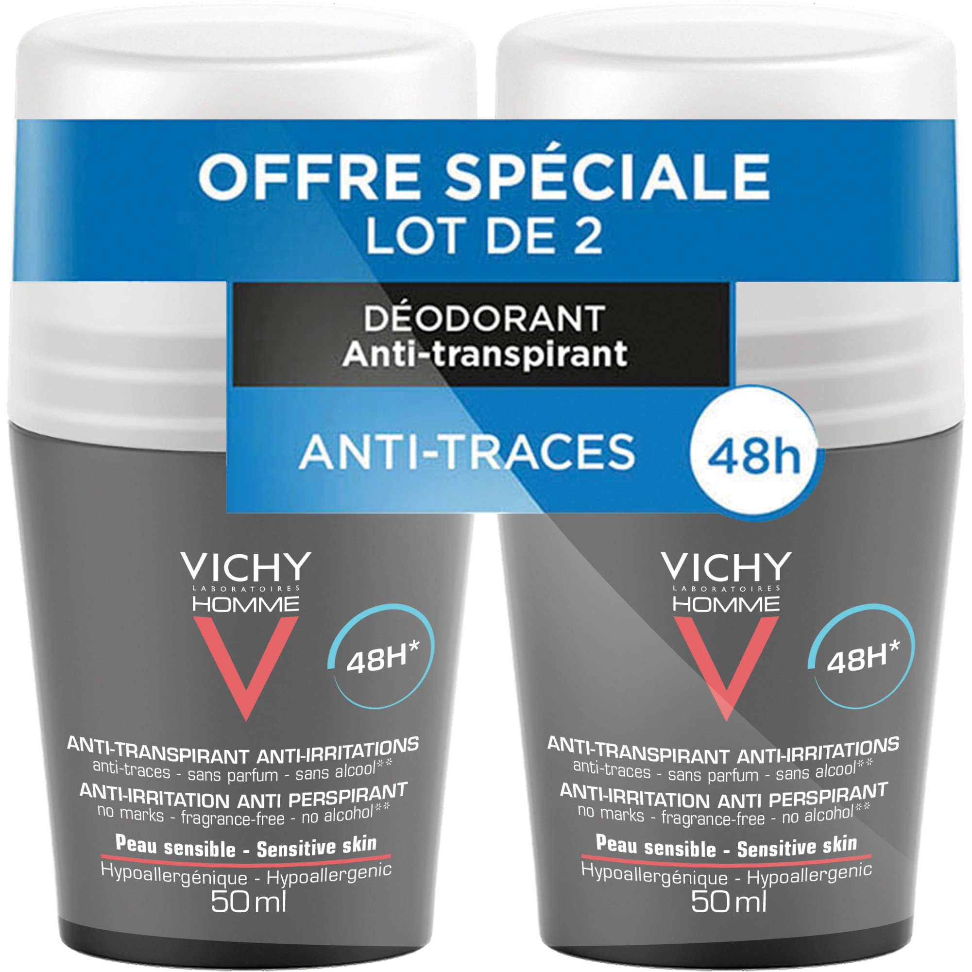 Libellé Vichy Déodorant à bille anti-transpirant lot 2x50ml