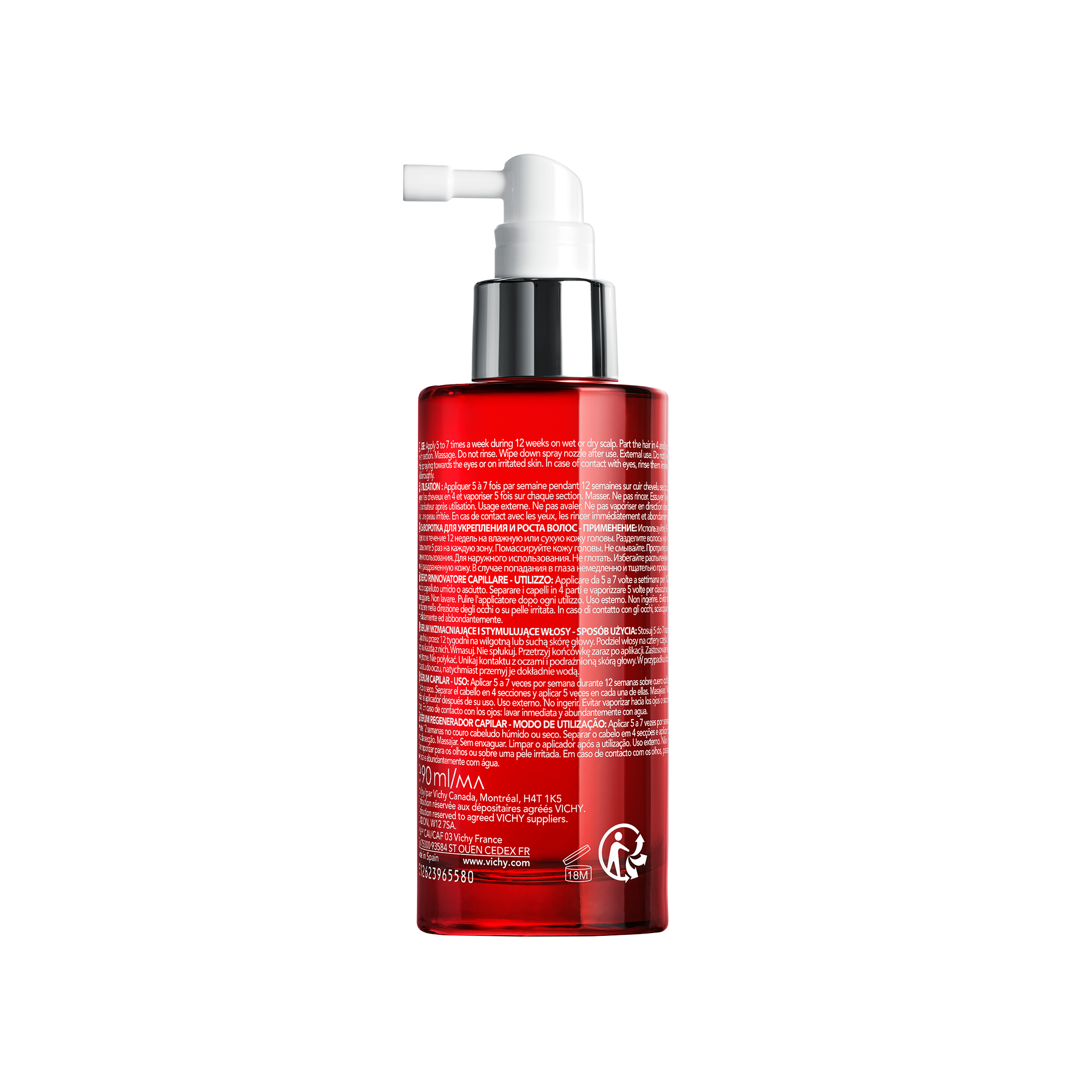 Appliquer 5 à 7 fois par semaine pendant 12 semaines sur cuir chevelu sec ou humide. Séparer les cheveux en 4 et vaporiser 5 fois sur chaque section. Masser. Ne pas rincer. Essuyer l'embout du vaporisateur après utilisation.