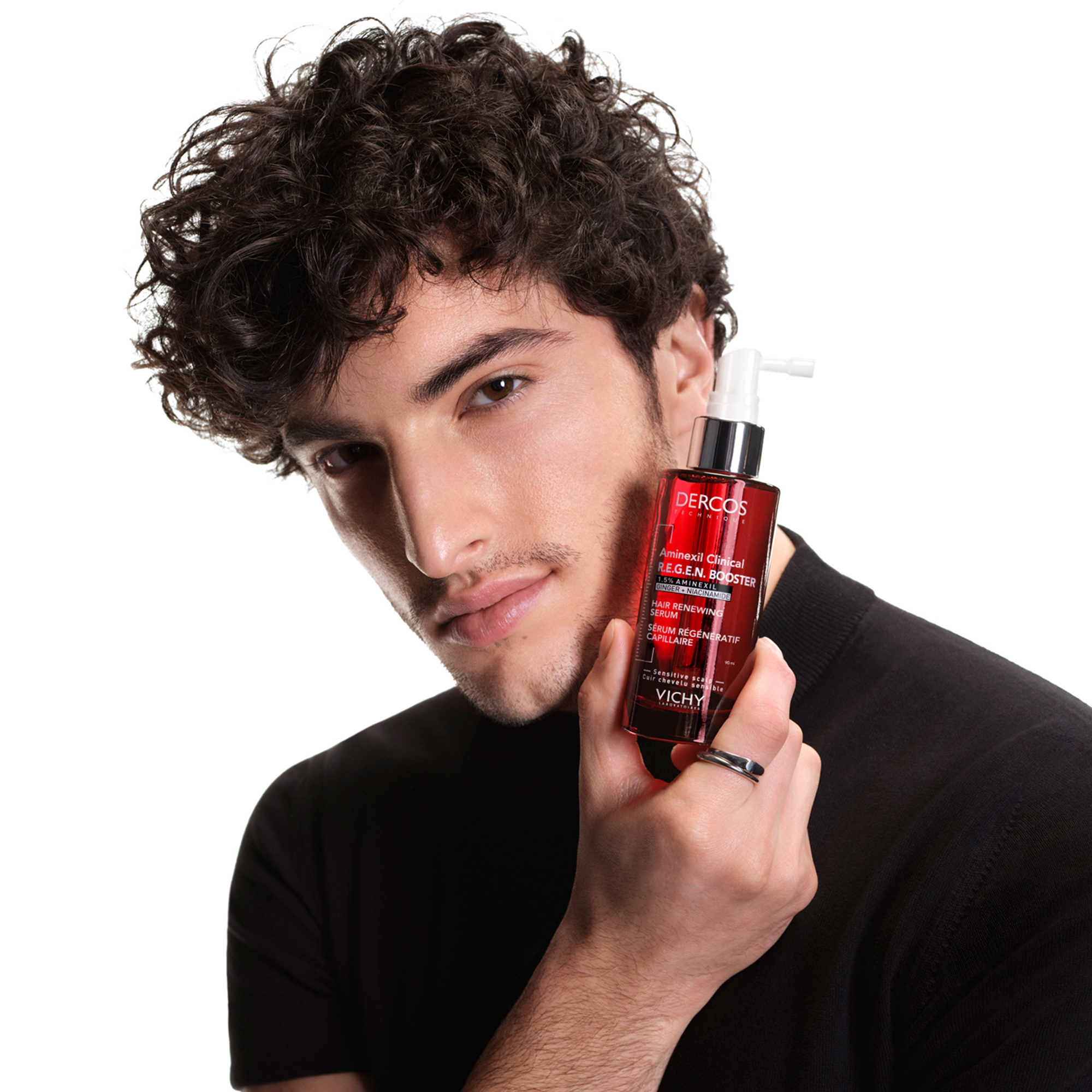 Sérum régénératif capillaire anti-chute à l'efficacité prouvée: +14 000 cheveux en 12 semaines. Efficacité prouvée: stimule l'activité du cuir chevelu pour +14 000 cheveux en 12 semaines*. Les cheveux paraissent plus denses avec +68% de volume**. La fibre capillaire est plus épaisse et 2x plus forte***. Le cuir chevelu est comme revitalisé et énergisé. *Etude clinique sur 40 femmes et 37 hommes à raison de 5 applications par semaine durant 12 semaines. **Test instrumental. ***Test instrumental, après utilisation du shampooing Energy+ et du sérum Aminexil Clinical REGEN BOOSTER.