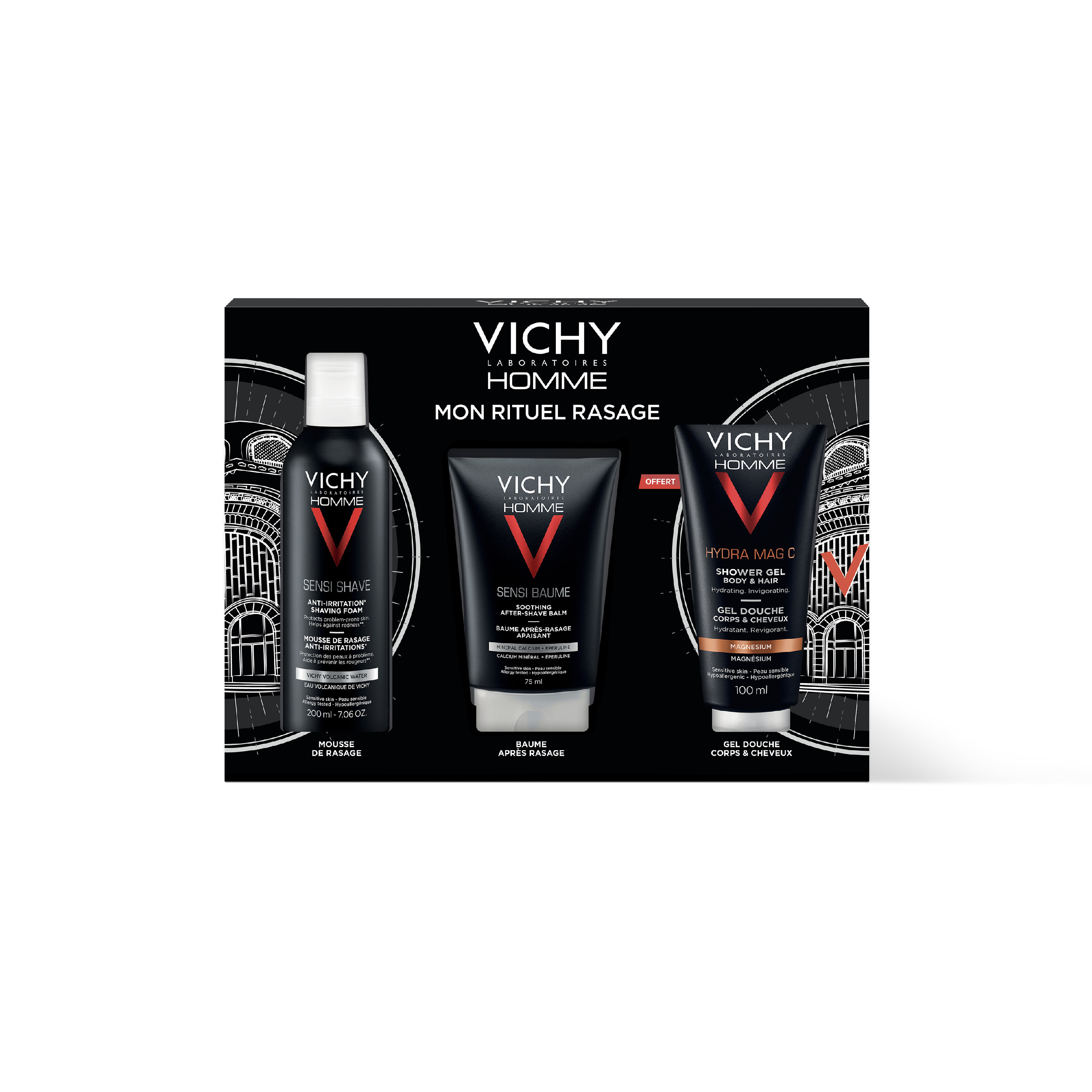 Libellé Vichy Homme Coffret Cadeau Mon Rituel Rasage - Mousse Rasage 200ml + Baume Après Rasage 75ml + Gel Douche 200ml